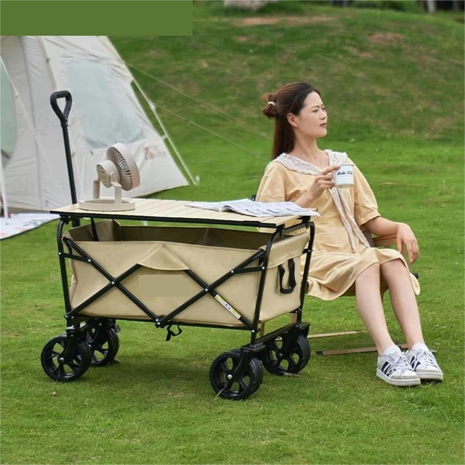 Design versatile: il carrello da campeggio pieghevole è progettato per varie attività all'aperto come campeggio, picnic, gite in spiaggia e giardinaggio. Grazie agli interni spaziosi, puoi trasportare facilmente tutte le tue cose importanti. Facile da riporre e trasportare: questo carrello si ripiega comodamente fino a raggiungere dimensioni compatte per riporlo facilmente nel bagagliaio o nell'armadio. La sua struttura leggera lo rende facile da trasportare, così puoi portarlo ovunque. Costruzione robusta: Realizzato con materiali durevoli, il camper pieghevole può trasportare carichi pesanti, assicurando che possa trasportare di tutto, da frigoriferi e sedie all'attrezzatura sportiva senza compromettere la stabilità Caratteristiche facili da usare: Dotato di maniglie regolabili per un comodo traino e ruote scorrevoli che navigano su varie superfici, questo carrello è progettato per un facile utilizzo, rendendo le tue avventure all'aria aperta senza problemi Tanto spazio: Grazie alla generosa capacità di carico, il carrello offre molto spazio per la tua attrezzatura, generi alimentari o giocattoli per bambini. Grazie al design accurato, tutto rimane organizzato e facilmente accessibile durante i tuoi viaggi.