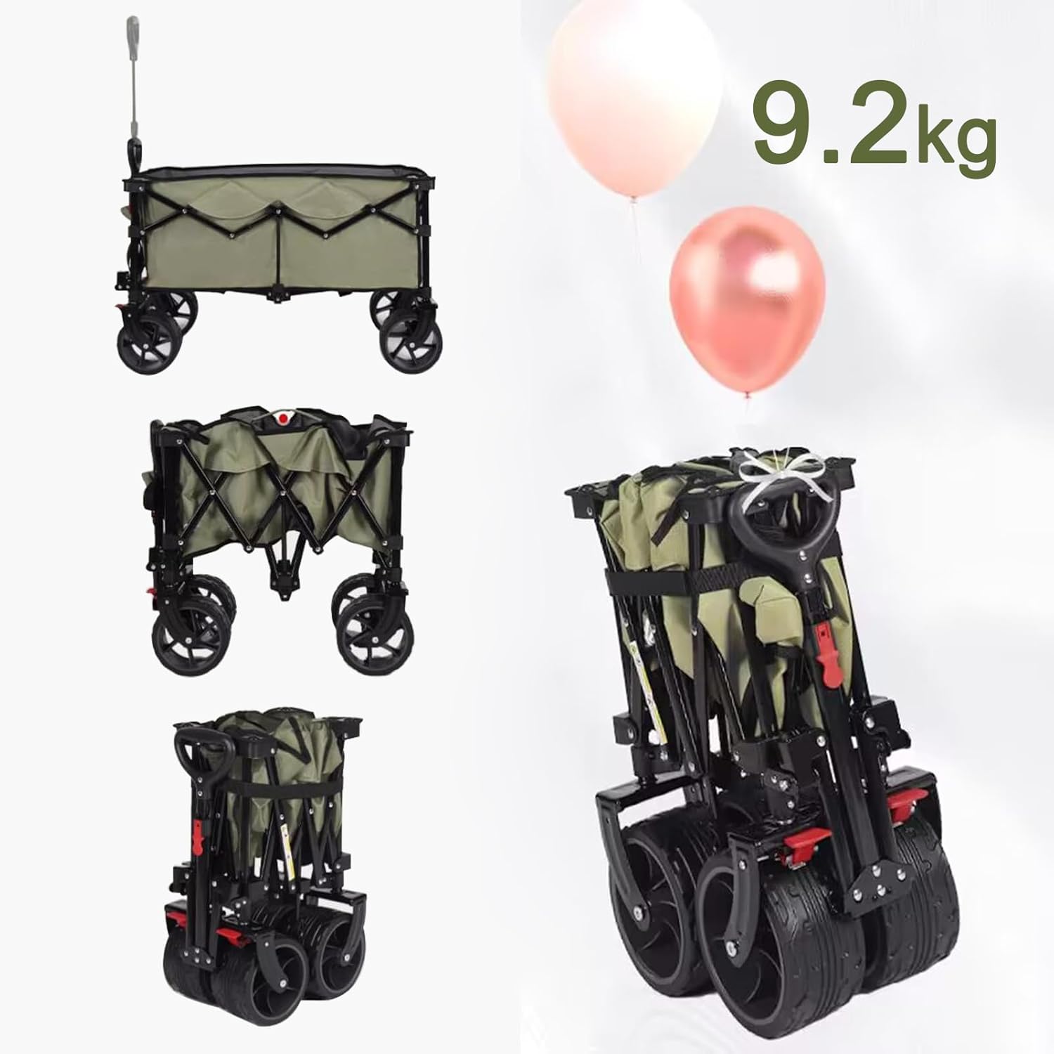 - Elevata capacità: questo carrello da campeggio all'aperto offre un'ampia capacità di stoccaggio di 135 litri ed è perfetto per trasportare tutta l'attrezzatura da campeggio e gli accessori. - Costruzione di livello industriale: realizzato con staffe per tubi in acciaio al carbonio robuste e durevoli, questo carrello può supportare un peso fino a 330 libbre, garantendo prestazioni affidabili e di lunga durata. - Ruote fuoristrada: dotato di ruote fuoristrada robuste e versatili, questo carrello può spostarsi facilmente attraverso vari terreni tra cui erba, sabbia, fango e sentieri rocciosi. - Maniglia regolabile: il carrello è dotato di una maniglia telescopica in tre pezzi che offre opzioni regolabili in altezza per tirare o spingere comodamente e comodamente. - Tessuto Oxford a doppio strato: Il trolley è realizzato in tessuto Oxford 600D a doppio strato come copertura, che fornisce un'eccellente resistenza all'usura e agli agenti atmosferici e garantisce affidabilità a lungo termine.