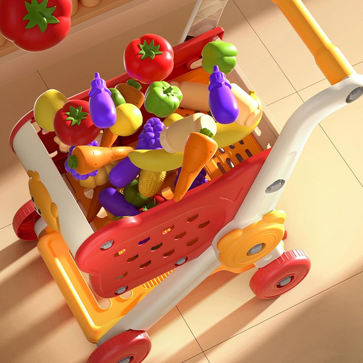 Giocattolo multifunzionale: Transizione dai primi passi all'apprendimento tramite modalità regolabili. Costruzione robusta e pieghevole offre intrattenimento duraturo per interni ed esterni sempre. Gioco Interattivo: Carrello giocattolo con modelli frutta verdura e parti staccabili che simulano la spesa reale, stimolando lo sviluppo logico precoce attraverso il gioco di immaginazione in scene quotidiane Compagno di Giochi Istruttivo: Stimola i bimbi a esplorare colori, forme e giochi di imitazione, promuovendo l'interazione genitore-figlio per introdurre concetti matematici precoci e rafforzare le capacità linguistiche durante l'uso quotidiano Costruzione Resistente: Colori inalterabili nel , qualità costruttiva , superfici lisce, bordi arrotondati sicuri e materiali testati per presa e contatto bocca da parte dei bambini Divertimento Educativo: Prodotto con antiribaltamento, ruote scorrevoli silenziose e funzioni premibili che incoraggiano l'esplorazione creativa e il rafforzamento delle abilità manuali nel gioco di ruolo