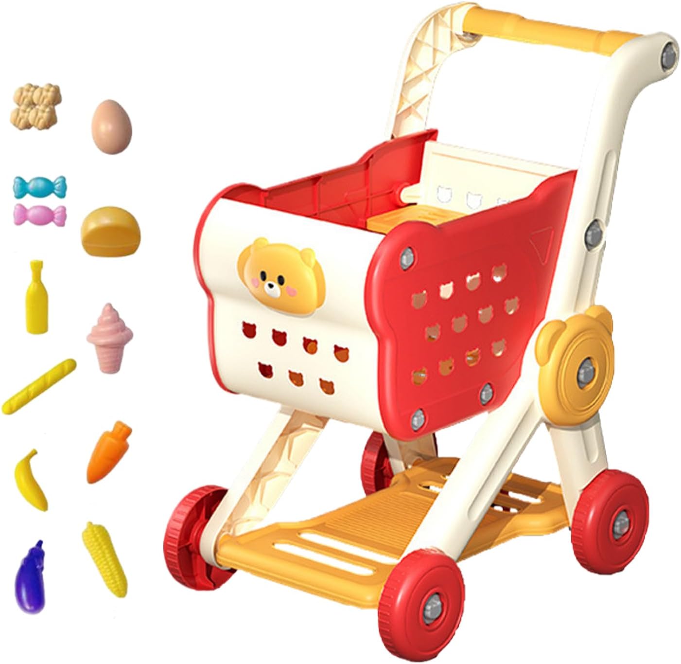 Gioco di ruolo che favorisce l'apprendimento: design vivace con elementi rimovibili e manichini alimentari supporta giocosamente lo sviluppo di capacità di problem solving Base di stabilità antiribaltamento: la costruzione integrata antiribaltamento garantisce un gioco sicuro, migliora la costruzione delle abilità motorie fini con ruote scorrevoli e lega efficacemente i bambini grazie agli elementi di spinta Divertimento in crescita: questo carrello della spesa per bambini accompagna i passi di sviluppo del tuo bambino grazie alle funzioni regolabili, dall'apprendimento alla scoperta giocosa. Grazie al design pieghevole compatto è ideale per avventure di gioco spontanee all'interno e all'esterno. Giocattolo educativo: promuove giocosamente l'apprendimento dei colori e delle forme attraverso il gioco di scena creativo, rafforza l'interazione genitore-figlio e sviluppa i primi concetti di conteggio e le abilità linguistiche nelle attività quotidiane Struttura affidabile: colori vivaci e resistenti allo sbiadimento con struttura massiccia. Forme sagomate morbide, lucidatura dei bordi raffinata e superfici adatte ai bambini per giocare senza preoccupazioni.