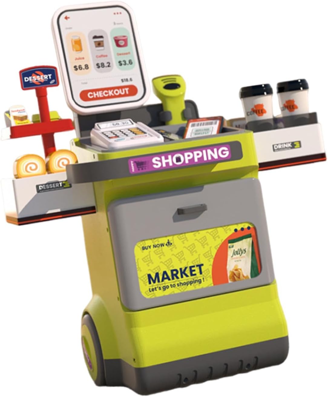 Sicurezza Assoluta: Carrello giocattolo bimbi con base ultra stabile e ruote antiscivolo per totale sicurezza, ideale per esperienze di gioco autonomo dai 18 in su Divertimento nel Gioco Simbolico: Supporta appassionanti giochi di ruolo e simulazioni da supermercato, con design gioca-e-riponi che mantiene i giochi accessibili e rende emozionante il gioco dello shopping Giocattolo Apprendimento Attivo:Stimola lo sviluppo linguistico infantile con set spesa giocattolo interattivo, il carrello bambini diventa strumento didattico per apprendimento precoce tramite coinvolgenti attività di ruolo quotidiane. Competenze Quotidiane: Stimola i bambini ad apprendere abilità pratiche tramite gioco di finzione con carrello, rendendolo idea regalo compleanno perfetta e gioco evolutivo per scoprire la responsabilità in modo divertente e coinvolgente che favorisce l'autonomia progressiva durante la crescita Materiali Giocattolo Durevoli: Include frutta giocattolo tagliabile e cibi realistici per promuovere l'esplorazione pratica, accendendo l'interesse per l'apprendimento durante attività di ruolo con materiali resistenti a lunga durata