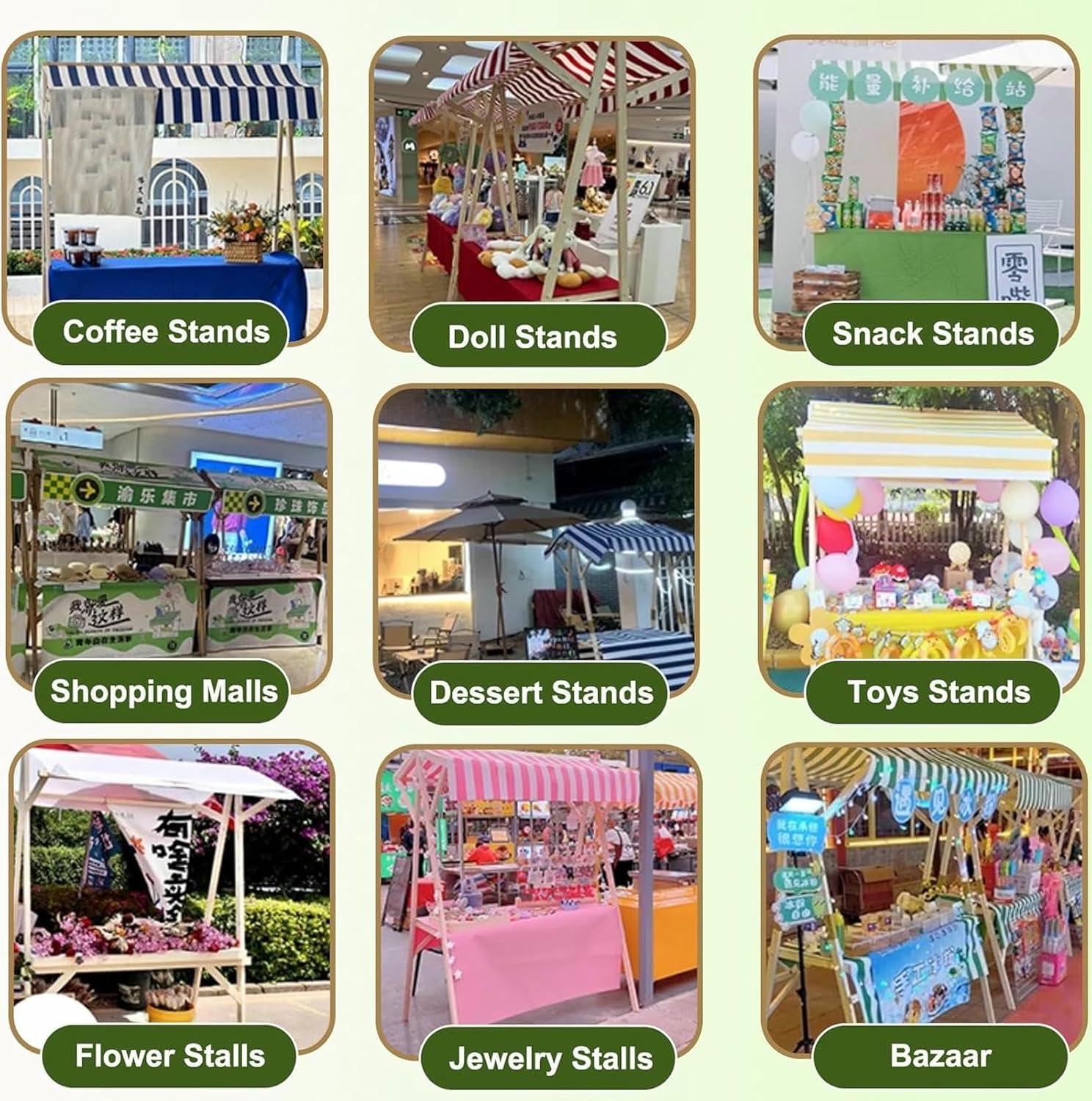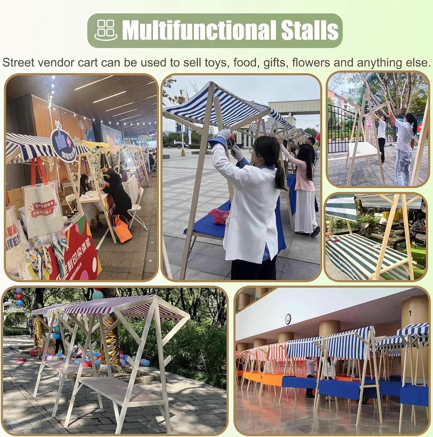 (Stand pieghevole): lo stand del mercato del nostro contadino richiede solo 30 secondi per piegarsi rapidamente. Si piega fino a un'impronta più piccola, risparmiando spazio di archiviazione. Più facile da conservare nel bagaglio, garage, seminterrato, casa, ecc. risparmiando denaro sull'affitto (Carrello del venditore di legno): I nostri carrelli di cibo di strada sono costruiti con tavole da banco larghe da 60 cm (23 5/8") e telaio di gamba di legno spessore da 4 cm (1 5/8"). Il telaio in legno massiccio e la struttura triangolare aumentano la capacità di carico. Capacità di carico 200kg (400Lbs) (Kiosko di mercato con baldacchino): Dotato di una baldacchino in tessuto Oxford, che ombreggia efficacemente il sole. E può proteggere le merci dai danni dovuti al mal tempo, causando perdite economiche. Viene fornito con tovaglie eleganti per attirare l'attenzione dei clienti ( Venditore versatile stallo ): Che tu operi in centri commerciali, mercati agricoltori, fiere, chioschi al dettaglio o luoghi per eventi all'aperto. Che tu vendi cibo, giocattoli, fiori, regali o altre merci, è ideale per i venditori mobili (Installazione di 3 minuti): Il telaio è pre-perforato con fori, quindi tutto quello che devi fare è assemblarlo utilizzando le viti incluse. E il quadro è così semplice che anche le ragazze e gli anziani possono installarlo senza drenare la loro energia
