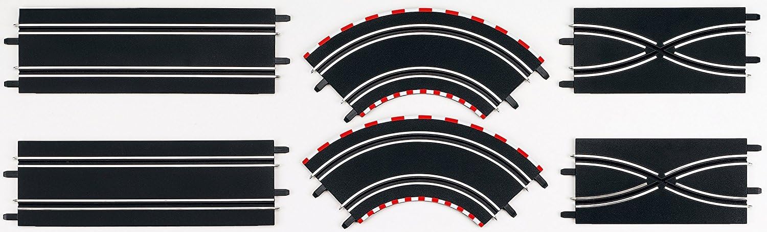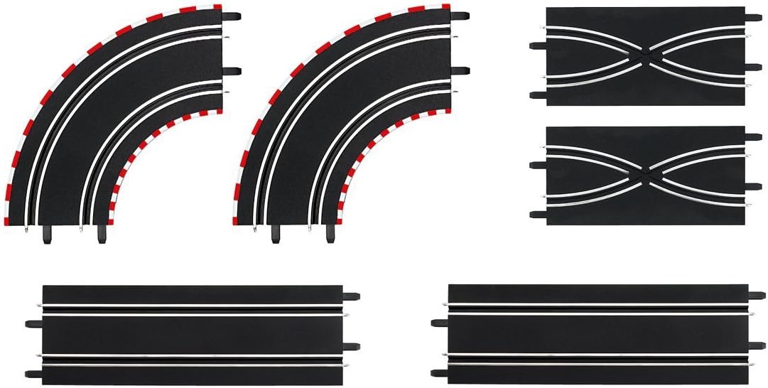 Set di ampliamento con sezioni in scala 1:43 DIGITAL 143 Carrera GO!!! Plus Carrera GO!!! Per espandere il tuo circuito Contenuto della confezione: 2 curve 1 / 90 gradi 2 cambi di corsia 2 rettilinei da 342 mm