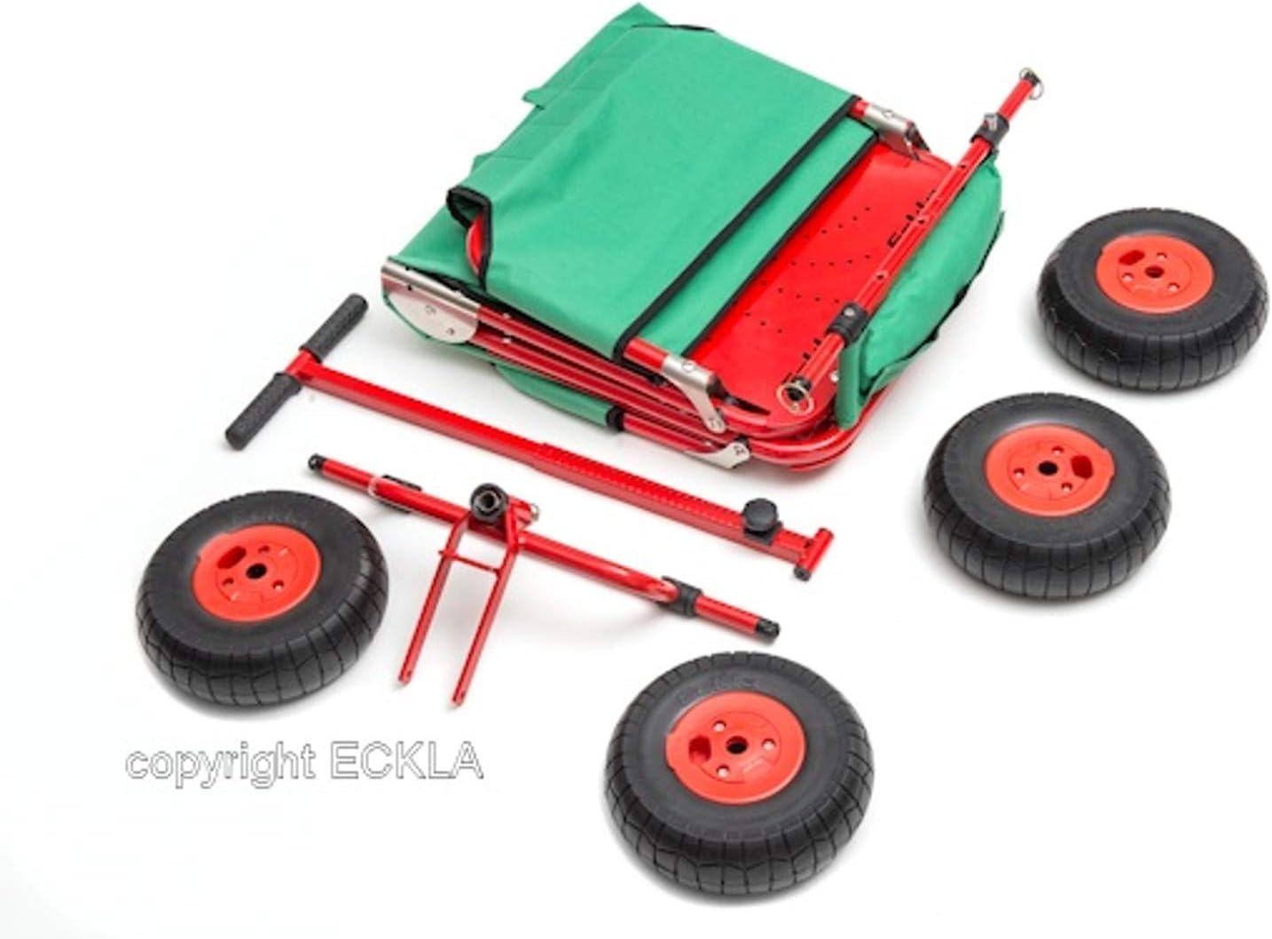 Carrello da trasporto stabile e pratico, robusto e facile da piegare Materiale: telaio in metallo verniciato a polvere (colore: rosso) dotato di raccordi in acciaio inossidabile di alta qualità, timone regolabile in lunghezza / limitatore di sterzo con pneumatici antiforatura / ruote con cuscinetti a rulli / Made in Germany