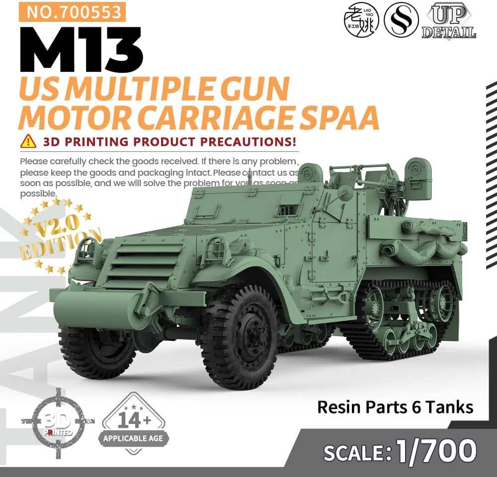 Carro armato dell'esercito non verniciato 1/700 US Multiple Gun Motor Carriage M13 SPAA