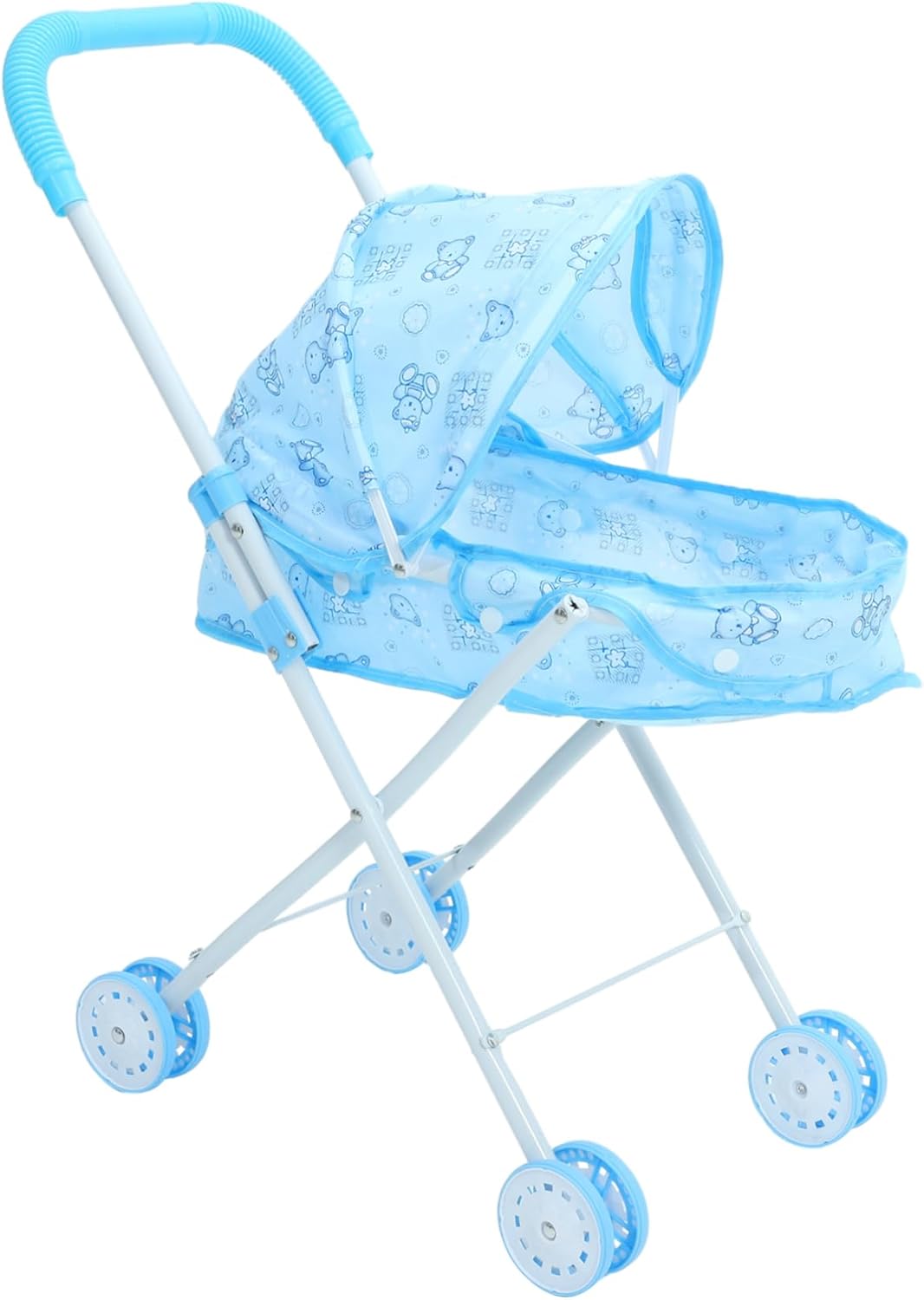 Carrozzina per bambole Carrello con struttura pieghevole L'interno della navicella misura 49x23 cm Ruote anteriori piroettanti Il manubrio è alto 73 cm