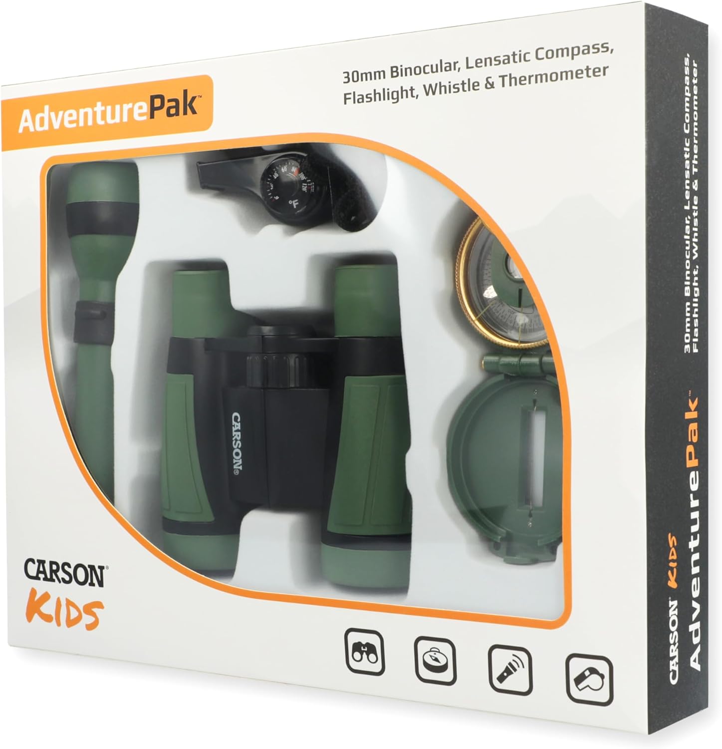Questo set di scoperte e avventure per piccoli ricercatori comprende un binocolo compatto per bambini, una bussola da escursionismo, una torcia elettrica e un fischietto con indicatore della temperatura integrato. Questo set contiene tutto ciò che è assolutamente necessario per la grande avventura e l'esplorazione all'aria aperta, supporta l'apprendimento STEM e incoraggia la curiosità scientifica e l'amore per la natura. Ideale per escursioni, viaggi, campeggio, avventure all'aria aperta, esplorazione della natura, spedizioni in giardino, esperimenti scientifici, osservazione di animali selvatici, attività educative e progetti scolastici. Il kit avventura è il regalo ideale per ragazzi e ragazze per esplorare il giardino, durante le escursioni o in campeggio nella natura selvaggia. Include borsa per il trasporto, tracolla e panno per la pulizia