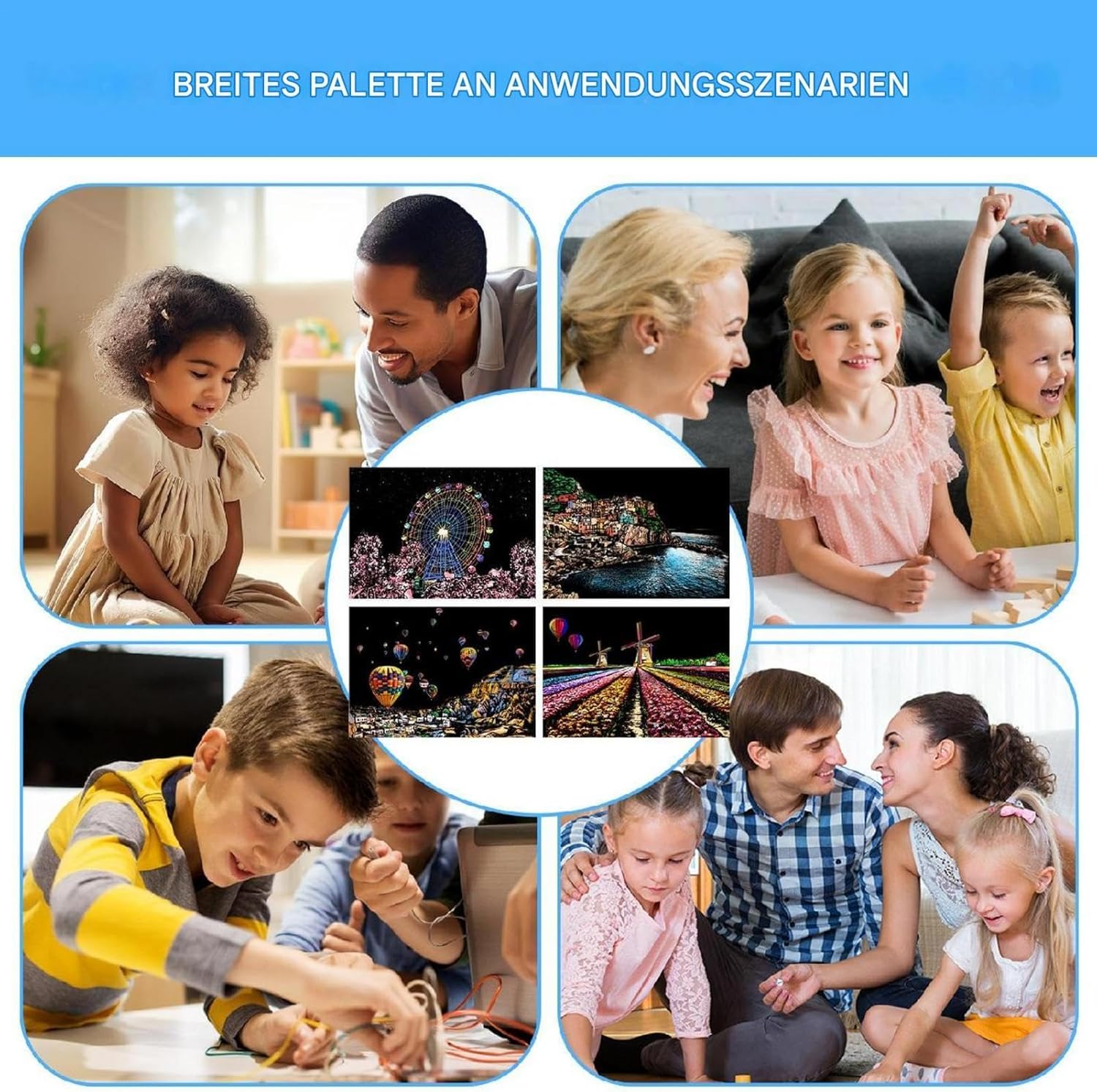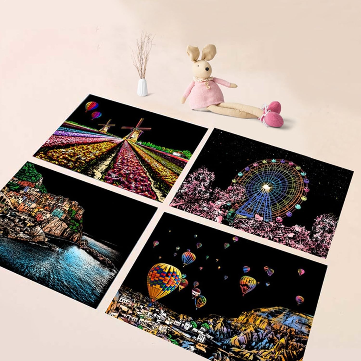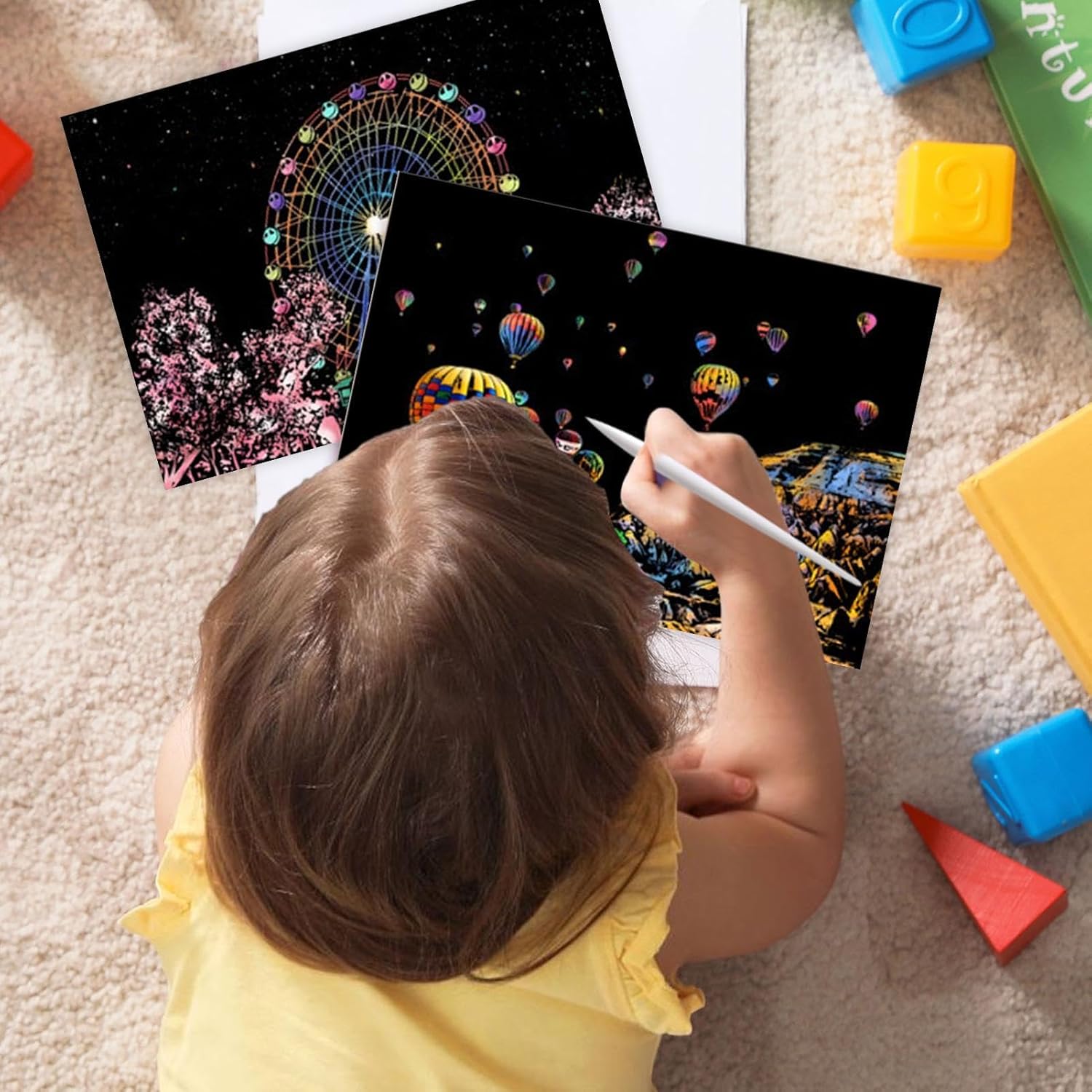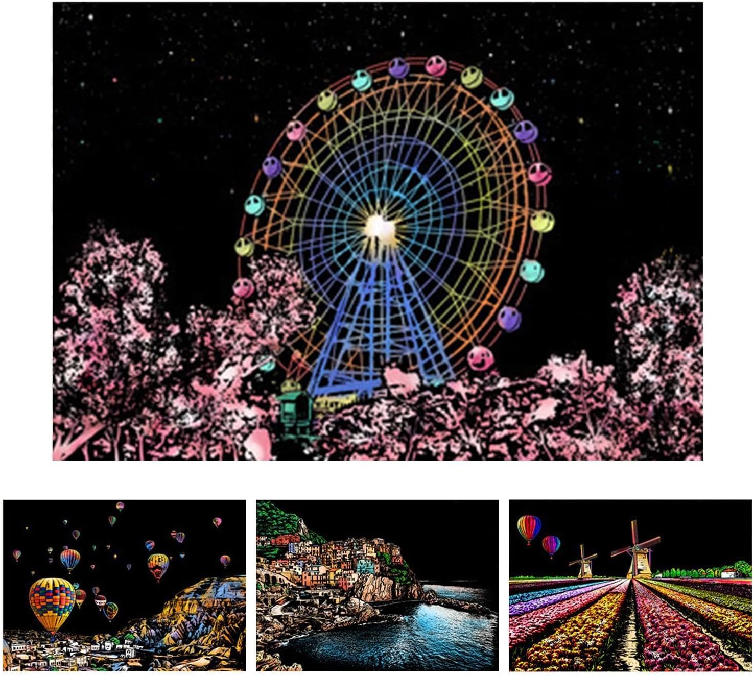 Design accattivante: con 4 fogli di carta da grattare in formato A4 per set e la visualizzazione di splendide scene notturne in città, questo set risveglia la curiosità creativa e migliora le capacità artistiche Facile da usare: con la sua finitura opaca che nasconde sia colori brillanti che motivi intricati, questo set di graffi offre un'entusiasmante possibilità artistica. Usa la penna per rendere visibile il design invisibile e goditi la soddisfazione tattile di scolpire con le tue mani Divertimento: inizia la tua creatività con il nostro kit di pittura post-gratta, perfetto per bambini e adulti. Goditi l'edutainment e il divertimento partecipando a questa divertente attività artigianale che promuove lo sviluppo artistico Facile da trasportare: Libera la tua creatività con questo kit di pittura e gratta in formato A4. Ideale per i viaggi o il tempo libero quotidiano, sia i bambini che gli adulti possono godere facilmente della bellezza accattivante dell'arte dei graffi e divertirsi senza sforzo Decorazione della stanza: trasforma qualsiasi stanza in un'opera d'arte con il nostro kit di pittura dopo la gratta. I lavori finiti non solo sono divertenti da progettare, ma aggiungono anche un tocco artistico unico al tuo arredamento