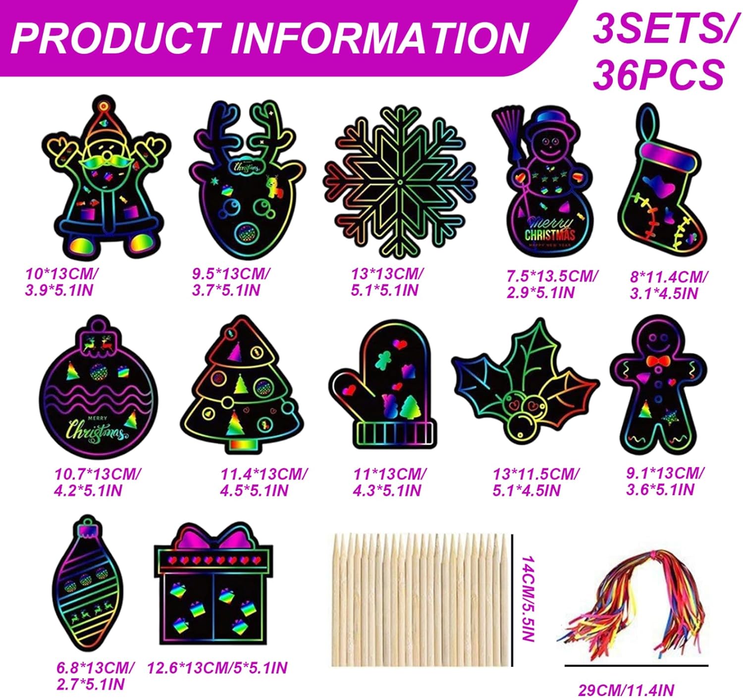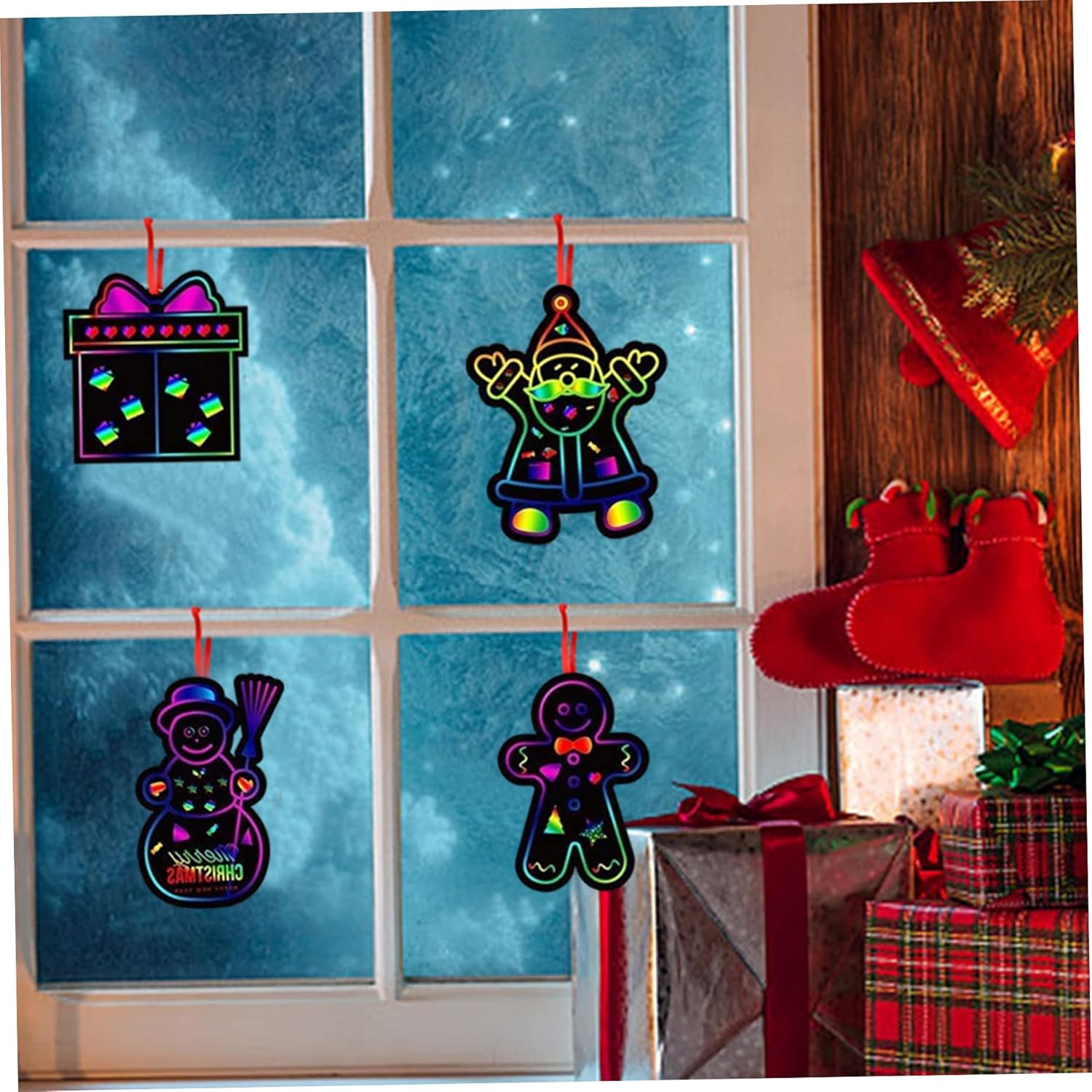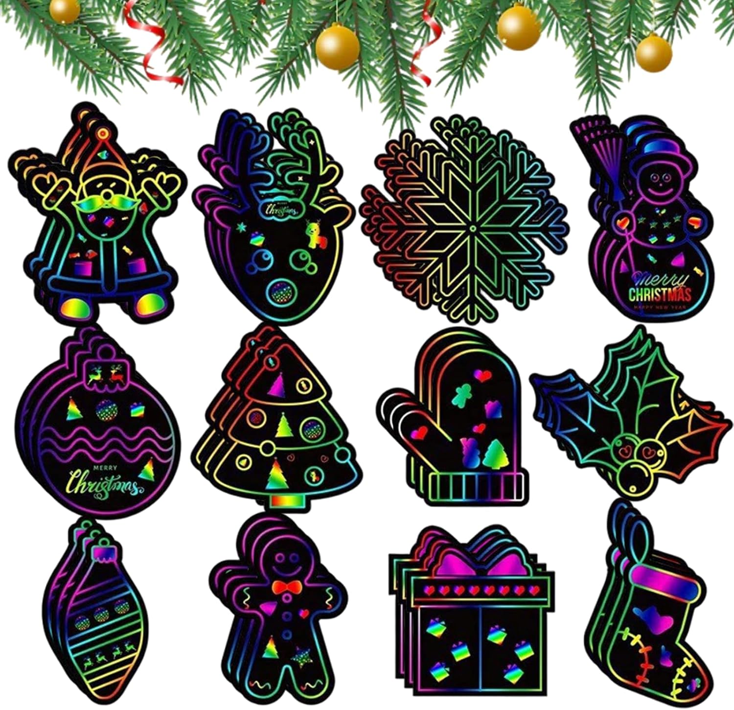 Sicuro e adatto ai bambini: realizzato con materiali non tossici, questo foglio da grattare è sicuro da usare per i bambini di tutte le età, incoraggiando un'espressione creativa sicura e sviluppando allo stesso tempo le capacità motorie. Bomboniere perfette: compatti e leggeri, questi fogli artistici da grattare arcobaleno sono ottimi bomboniere per le feste di Natale e per riempire le calze, deliziando i bambini con una scelta divertente e creativa che supporta il gioco fantasioso. Vivaci colori arcobaleno: ogni set include 36 fogli di carta antigraffio arcobaleno di alta qualità, che offrono colori vivaci e accattivanti che migliorano ogni progetto artigianale natalizio..Perfetto per ispirare la creatività dei bambini con motivi colorati e accattivanti. Facile da usare: i fogli da grattare rivelano sfondi luminosi e color arcobaleno senza sforzo quando vengono graffiati, offrendo ore di divertimento fai-da-te divertente e senza problemi per tenere impegnati i bambini durante le festività natalizie. Divertimento a tema festivo: presenta disegni festivi tra cui Babbo Natale, pupazzo di neve, albero di Natale e calza, che lo rendono un'attività ideale per feste di Natale, riunioni di famiglia e arti e mestieri a tema festivo.