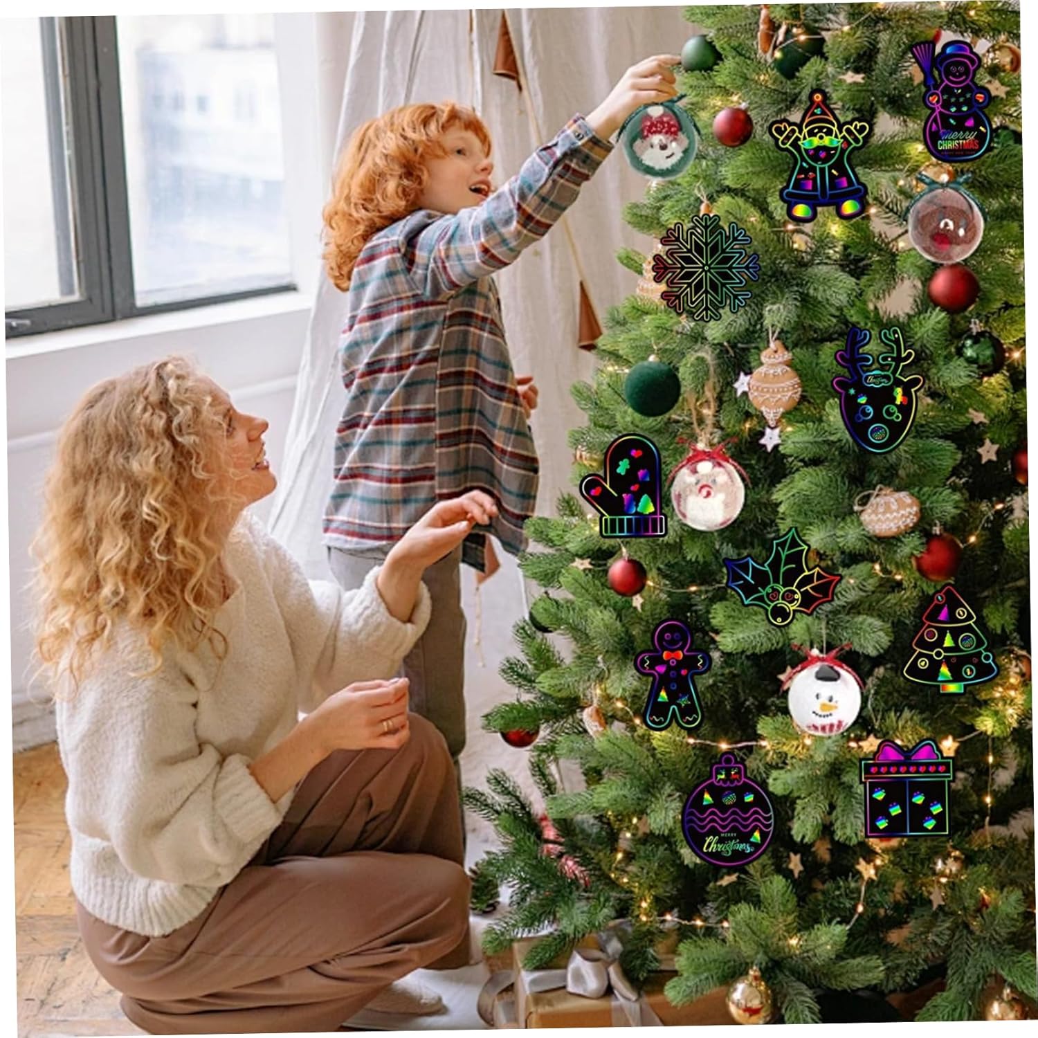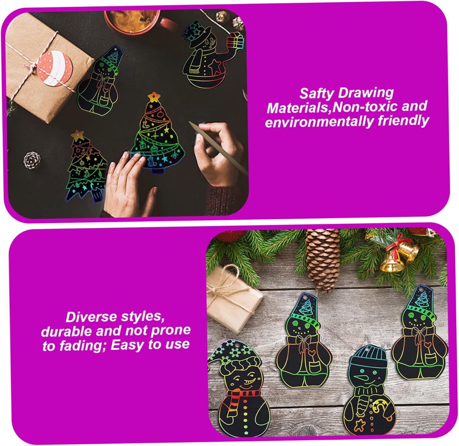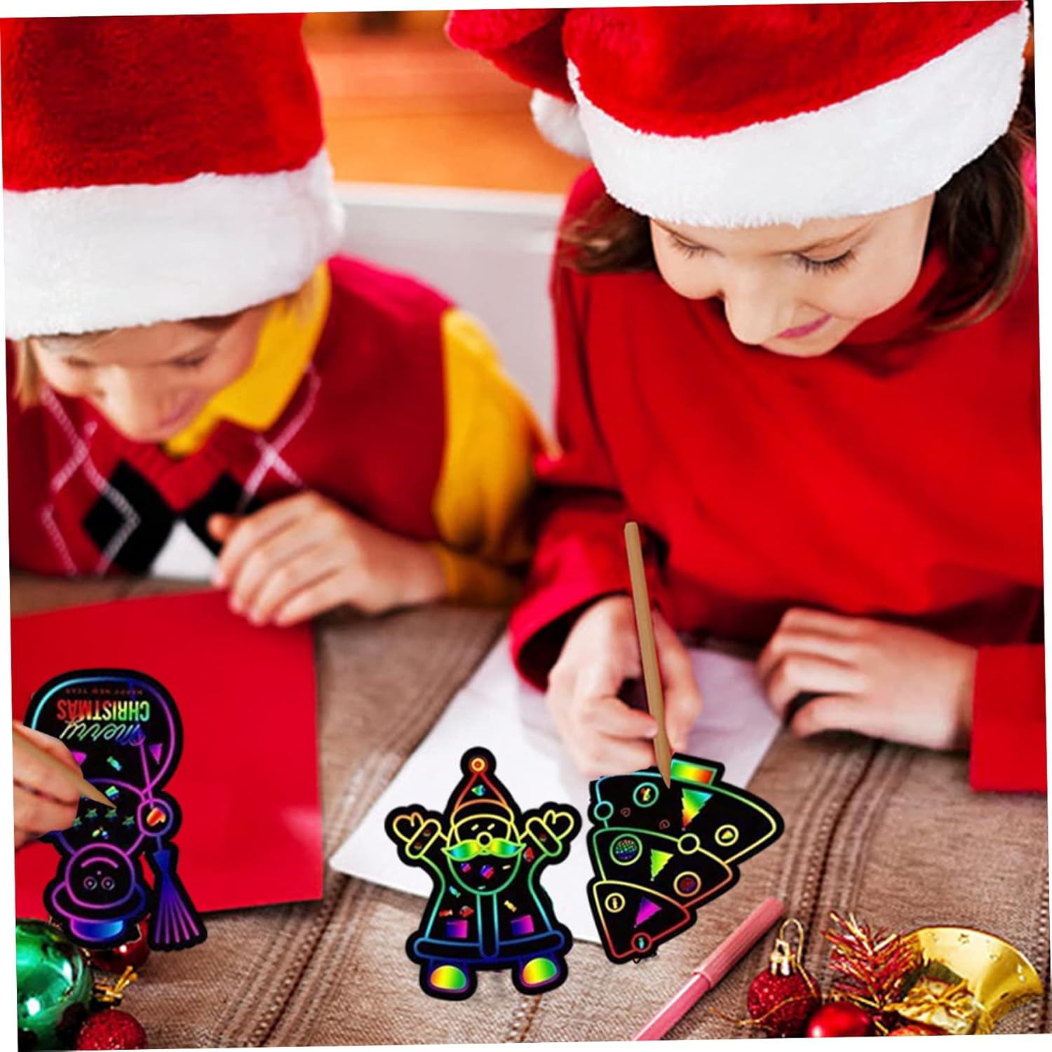 Sicuro e adatto ai bambini: realizzato con materiali non tossici, questo foglio da grattare è sicuro da usare per i bambini di tutte le età, incoraggiando un'espressione creativa sicura e sviluppando allo stesso tempo le capacità motorie. Bomboniere perfette: compatti e leggeri, questi fogli artistici da grattare arcobaleno sono ottimi bomboniere per le feste di Natale e per riempire le calze, deliziando i bambini con una scelta divertente e creativa che supporta il gioco fantasioso. Vivaci colori arcobaleno: ogni set include 36 fogli di carta antigraffio arcobaleno di alta qualità, che offrono colori vivaci e accattivanti che migliorano ogni progetto artigianale natalizio..Perfetto per ispirare la creatività dei bambini con motivi colorati e accattivanti. Facile da usare: i fogli da grattare rivelano sfondi luminosi e color arcobaleno senza sforzo quando vengono graffiati, offrendo ore di divertimento fai-da-te divertente e senza problemi per tenere impegnati i bambini durante le festività natalizie. Divertimento a tema festivo: presenta disegni festivi tra cui Babbo Natale, pupazzo di neve, albero di Natale e calza, che lo rendono un'attività ideale per feste di Natale, riunioni di famiglia e arti e mestieri a tema festivo.