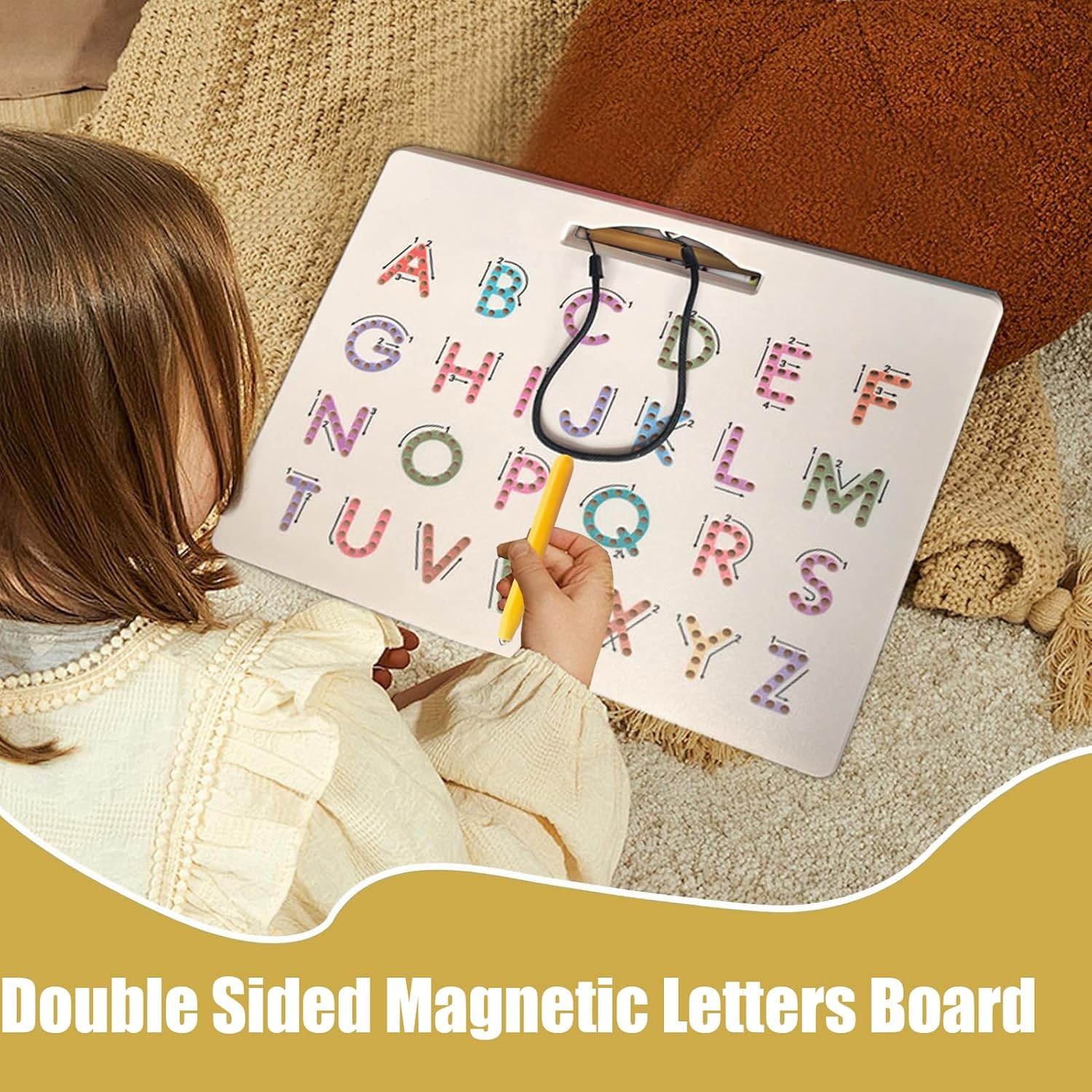 Miglioramento delle capacità di scrittura: con un design a due lati della carta di lettere, questo strumento migliora le formazioni di pratica di scrittura e guida gli utenti correttamente a formare lettere; La penna magnetica stimola lo sviluppo della memoria muscolare, un miglioramento costante attraverso un gioco interattivo Esperienza di apprendimento giocoso: combina i magneti con le attività di tracciamento per creare un'esperienza di apprendimento giocoso, che incoraggia l'esplorazione attiva e trasforma l'istruzione in un gioco attraente per i giovani studenti Pratica conservazione della penna: con una penna magnetica che rimane attaccata alla tavola, promuovendo la pratica e offrendo un'accessibilità senza sforzo durante l'uso o lo stoccaggio PRATICO presente: Progettato per combinare divertimento e praticità, questo strumento favorisce lo sviluppo cognitivo e fa un regalo memorabile per chi raggiunge pietre miliari chiave dell'apprendimento Materiali durevoli: realizzati con materiali durevoli e resistenti all'usura che proteggono le mani con cerchi lisci e mantiene la sua forma anche dopo un uso frequente nel tempo