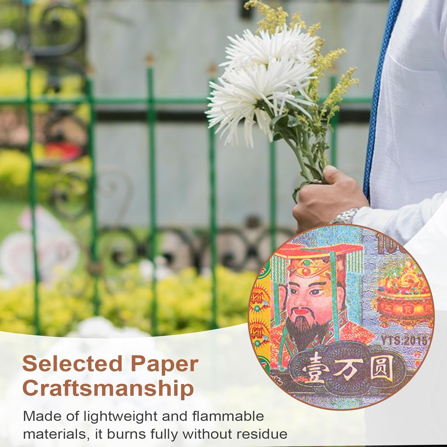 Artigianato sofisticato: Ancestor Money raffigura motivi orientali tradizionali e immagini simboliche che portano ricchi significati culturali e soddisfano molteplici tradizioni sacrificali con una lavorazione perfetta, su misura per le pratiche spirituali. Servire a lungo: realizzato con materiali leggeri e altamente infiammabili, garantisce che non si bruci e soddisfa i requisiti dei tradizionali rituali orientali per una cerimonia dignitosa. Facile da trasportare: Con dimensioni uniformi e ampia quantità, Ancestor Money semplifica la classificazione e l'utilizzo pur avendo due denominazioni, diecimila yuan e mille dollari, progettati per un'organizzazione perfetta e un facile trasporto durante il viaggio o lo stoccaggio Facile da usare: Consente un facile utilizzo nel mantenimento di tradizioni millenarie di culto ancestrale e offerte di festival, riflette il rispetto sincero e i ricordi cari del patrimonio familiare Ampiamente usato: Progettato per prevenire danni, questo articolo è ideale per molteplici applicazioni sacrificali, rimanendo ben conservato e pronto per l'uso quando necessario senza disordine