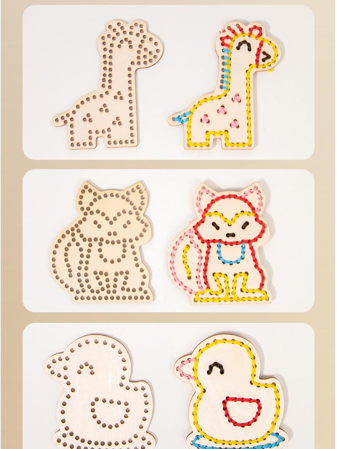 Supportare l'immaginazione: i bambini possono combinare liberamente motivi di animale colorati su queste carte allacciatura per progettare storie o scene uniche, promuovendo la creatività e il gioco immaginativo Sofisticata lavorazione: il design di grandi dimensioni e i materiali in legno di alta qualità garantiscono la sicurezza dei bambini, assicurando che non si facciano male o affrontino alcun rischi soffocante mentre giocano con le nostre carte di allacciatura Porta comodamente: incoraggia lo sviluppo fantasioso con questo set di carte di allacciatura che offre facili opportunità di apprendimento a casa, in viaggio o nelle asili Migliora la destrezza: i bambini possono esplorare la loro immaginazione mentre corrispondono alle corde a varie forme di animali, promuovendo il coordinamento occhio-mano e le capacità motorie per la crescita precoce dello sviluppo Incoraggia lo sviluppo cognitivo: coltivare le capacità manuali di base e le capacità di risoluzione dei problemi, questo strumento educativo fornisce un'importante base per la crescita e lo sviluppo dei bambini
