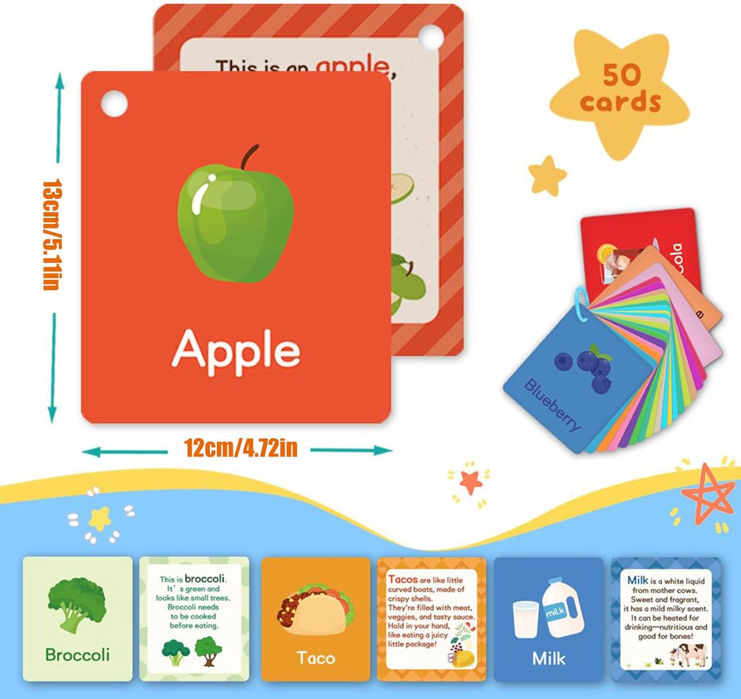 Supporto Visivo per l'Apprendimento: Carte con immagini di alimenti e nomi chiari stimolano il richiamo attivo e le capacità di riconoscimento, offrendo un modo coinvolgente per insegnare i gruppi alimentari base in ambienti domestici o scolastici. Robusto e Sicuro per Bambini: Realizzato con superfici laminate per prevenire macchie, supporta la flessibilità delle dita e la pratica della lettura, progettato per mani piccole Contenuti Apprendimento Diversificati: Cinquanta carte in sei categorie inclusive di frutta e cereali, con immagini realistiche ad alto contrasto per sviluppare sistematicamente la conoscenza nei bambini piccoli in modo e coinvolgente Portatile e Pratico: Include anelli rilegatori per organizzare le schede per tema, garantendo accesso rapido al ripasso, evitando la perdita dei componenti e offrendo soluzione di conservazione compatta per lo studio in movimento per studenti e bambini Sicurezza Angoli Arrotondati: Prodotte con carta spessa resistente ma delicata sulle mani, offrono una scelta affidabile per formazioni interattive ripetute grazie alla loro capacità di non deformarsi e alla superficie gentile