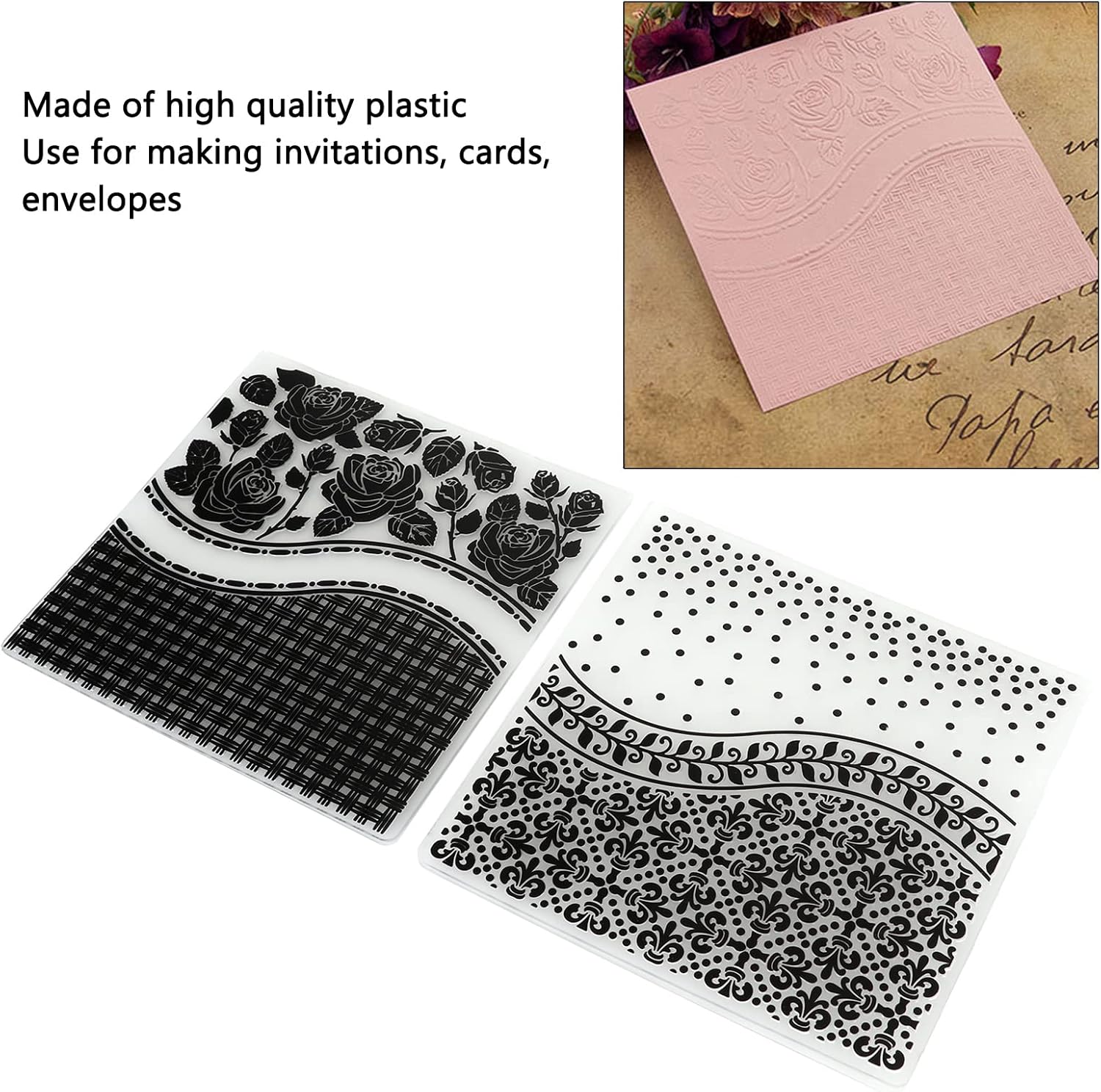 [Facile da usare] Queste cartelle di goffratura sono progettate per la creazione senza sforzo. Basta bloccare la carta tra i modelli e arrotolarlo attraverso una macchina artigianale di carta per ottenere incredibili effetti concavi e convessi. Perfetti per principianti ed esperti, queste cartelle funzionano perfettamente con la maggior parte delle macchine, tra cui gli sposi che garantiscono risultati fluidi e professionali ogni volta. [Ampia applicazione] Versatile e pratico, queste cartelle in rilievo sono ideali per una varietà di mestieri di carta. Crea bellissimi inviti, biglietti di auguri eleganti, buste personalizzate e album dettagliati. I loro design unici aggiungono un tocco di raffinatezza a qualsiasi progetto che li rende un must per gli appassionati di fai-da-te e gli artigiani professionisti. [Design unico] Distinguere con queste cartelle di goffratura meravigliosamente progettate. Ogni modello presenta modelli e trame intricate che elevano i tuoi mestieri di carta al livello successivo. Che tu stia realizzando un'occasione speciale o semplicemente per divertimento, queste cartelle offrono infinite possibilità creative e assicurano che i tuoi progetti sembrino realizzati professionalmente. [Materiale di alta qualità] Realizzati in plastica durevole, queste cartelle di goffratura sono costruite per durare. La costruzione robusta assicura che resistono all'usura anche con un uso frequente. Il loro design leggero li rende facili da trasportare e archiviare in modo da poter prendere i tuoi progetti di fabbricazione ovunque senza preoccuparti dei danni. [Workmanship di precisione] Prodotto con tecnologia di produzione avanzata, queste cartelle in rilievo offrono risultati coerenti e precisi. I bordi lisci e le trame dettagliate assicurano impressioni pulite ogni volta. Le loro dimensioni compatte e il design leggero li rendono un'aggiunta conveniente al tuo kit di strumenti per la creatività in movimento.