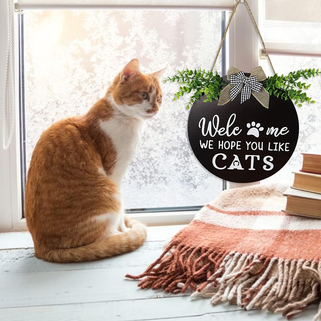 ☆ Moderno e il nostro cartello per la porta d'ingresso ha un design elegante e minimalista, completato da una bella composizione con verde e nastri che porterà un tocco di personalità e un tocco di personalità al tuo arredamento ☆ Design unico: trasforma la tua casa in un luogo accogliente e familiare che tutti adoreranno con il nostro cartello di benvenuto! Con il suo design accattivante e il messaggio "We hope you like cats", la nostra ghirlanda per porta farà sentire tutti accolti in una casa piena di calore e simpatici gatti che aspettano che tu faccia da compagnia ☆ Superiore Il cartello per porta d'ingresso è stato realizzato con grande attenzione ai dettagli, utilizzando materiali per un uso duraturo. Privo di schegge e robusto. È realizzato in solido che è noto per resistere a deformazioni o spaccature anche quando esposto all'aperto ☆ Uso versatile: sia che tu voglia ordinarlo per te o per qualcuno di speciale, questo cartello starà benissimo in qualsiasi angolo ☆ Ottimo regalo: eccellente come regalo di inaugurazione della casa o come regalo premuroso per famiglie con gatti, il nostro cartello guadagnerà sicuramente l'apprezzamento dei tuoi cari