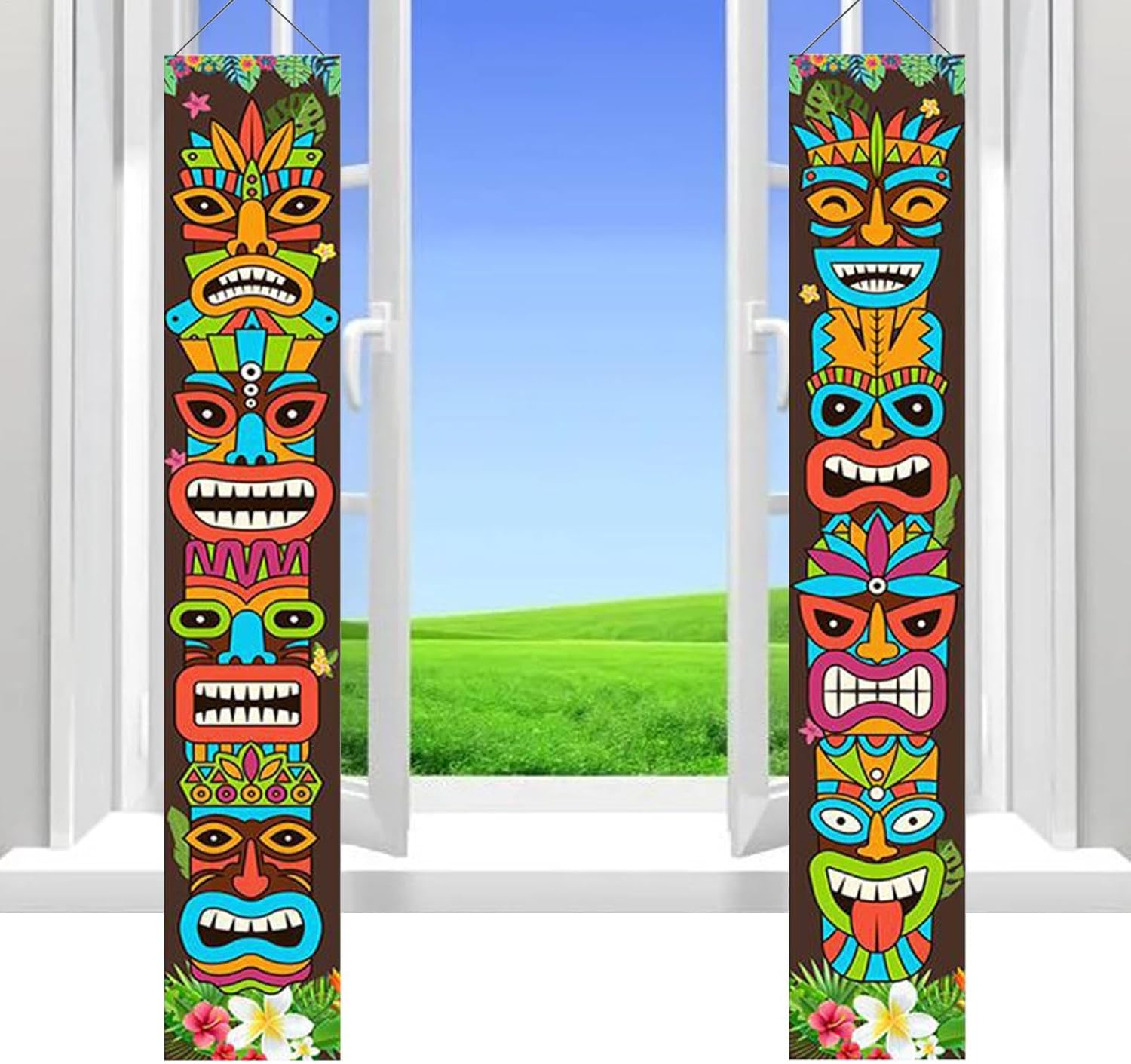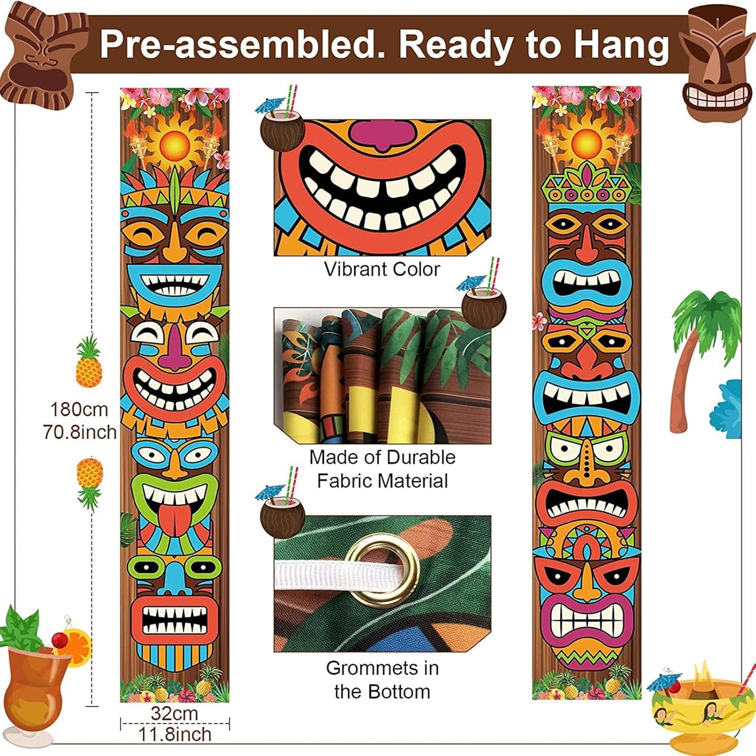 Stampa trasparente: il modello della decorazione Tiki è una tecnologia di stampa digitale con digitalizzazione ad alta definizione ecologica ed è luminoso e vibrante nella stampa. Non cade facilmente: questo striscione hawaiano è molto facile da installare, con punzoni di precisione e un palo e una corda nella parte superiore, pronto per l'uso dopo l'apertura. Banner decorativo: questo banner per porta Tiki non è solo da appendere alla porta d'ingresso. Può anche essere appeso nel corridoio, sulla porta, nel giardino e in altri luoghi. Ampiamente usato: questo è un cartello molto importante adatto per Hawaii, Tropical, Tiki, feste estive in piscina, feste con animali della giungla e feste di Carnevale di Venezia. Morbido e resistente: il nostro striscione da festival è realizzato in tessuto di poliestere morbido e leggero. Sono comodi da tenere, riutilizzabili e durevoli.