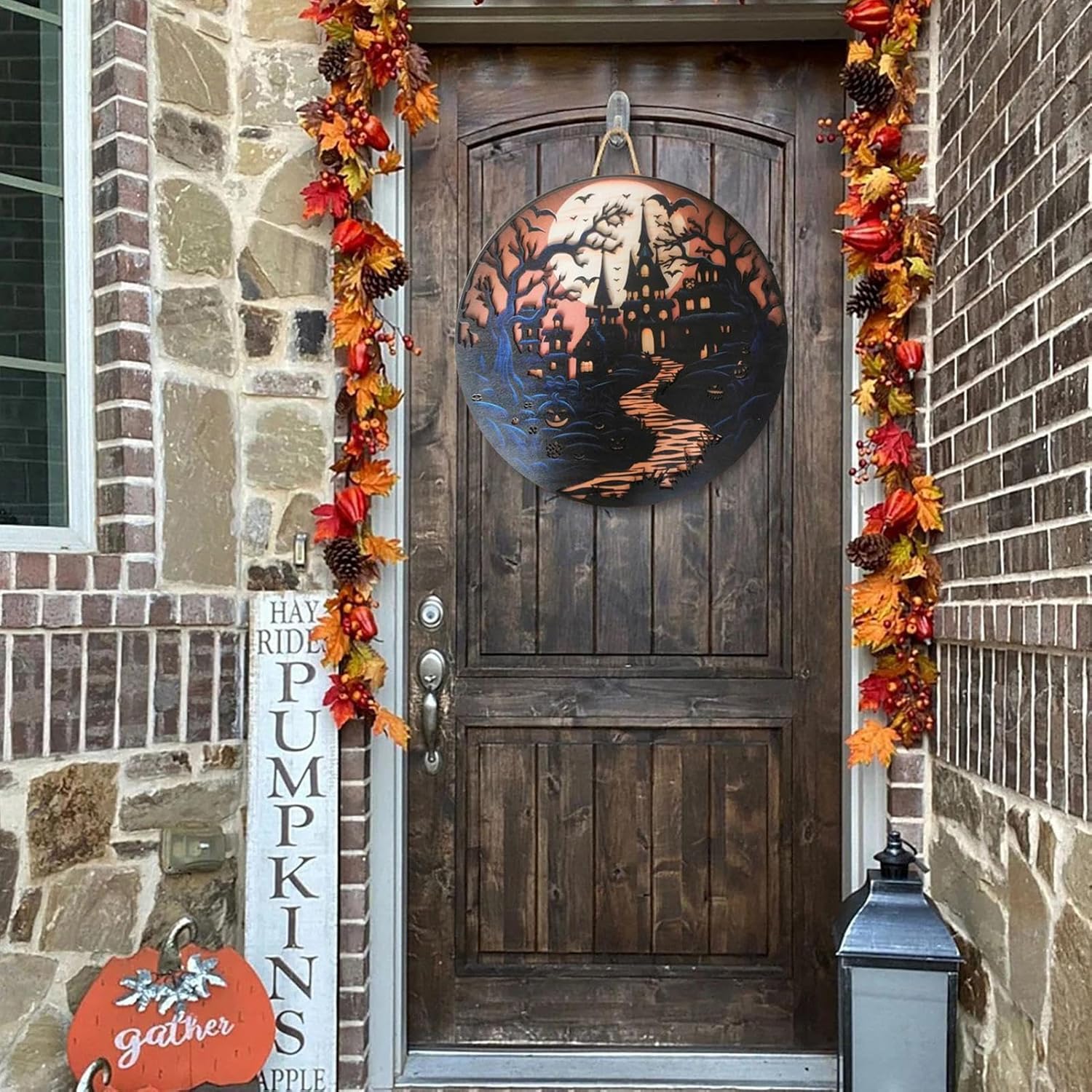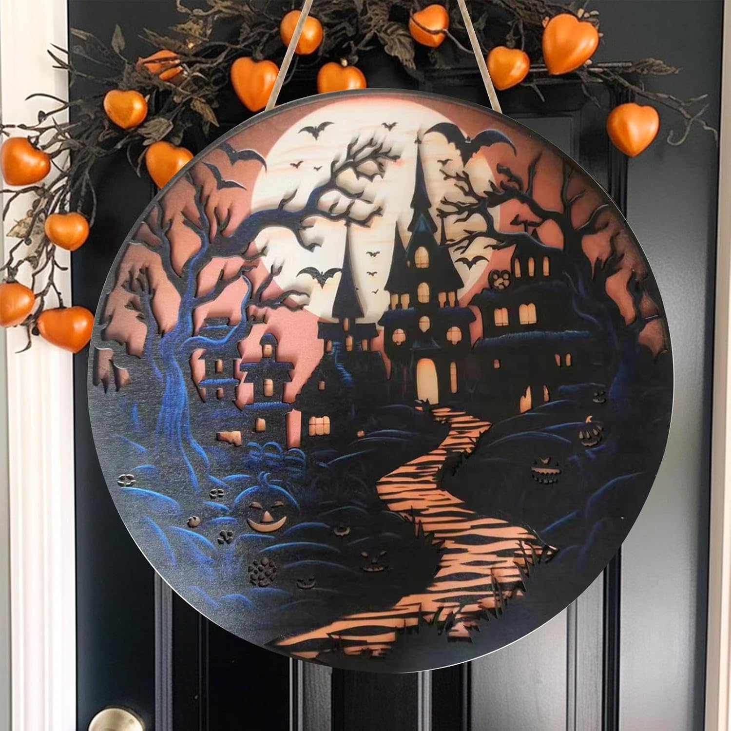 Atmosfera familiare: aggiungi un tocco di eleganza spettrale alla tua porta d'ingresso con il nostro cartello per porta di Halloween. Il design forte e raffinato presenta un classico motivo a castello, perfetto per creare un'atmosfera spettrale ma elegante. Facile da usare: appendi questo cartello per porta di Halloween su qualsiasi cosa con una corda. Il suo design leggero semplifica la decorazione di qualsiasi stanza di tua scelta e crea un'atmosfera spettrale, che si tratti di casa, studio o luogo di una festa Facile da trasportare: questa targa portatile per porta di Halloween, né troppo piccola né troppo grande, presenta accattivanti decorazioni per l'albero di Halloween che attireranno l'attenzione della gente Decorazione di lunga durata: Realizzata in robusto materiale di legno, questa targa per porta di Halloween garantisce un design che non sbiadisce facilmente e garantisce un uso duraturo delle tue decorazioni spettrali per gli anni a venire Ampia applicazione: Questa targa per porta di Halloween è fatta su misura a diverse preferenze ed esigenze, perfetto per camere da letto, soggiorni, porte, portici, feste di Halloween, feste a tema fantasma e altre occasioni