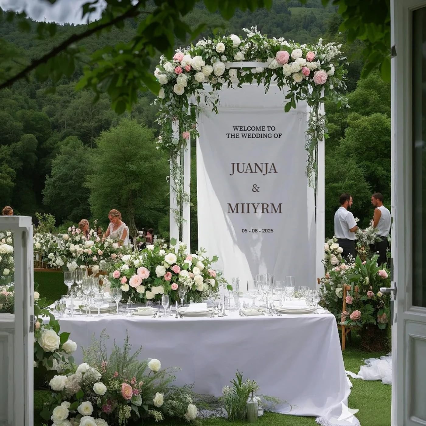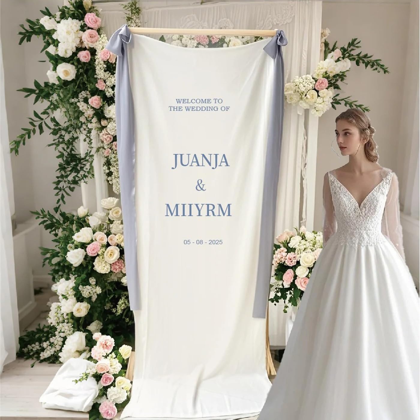 Cartello nuziale personalizzato in lino, perfetto per matrimoni all'aperto e decorazioni di eventi Personalizzato con i tuoi nomi e la data del matrimonio per un tocco unico Realizzato in tessuto di alta qualità per una maggiore durata e un look elegante Leggero e facile da appendere come cartello di benvenuto o decorazione Ideale per le spose che desiderano aggiungere un tocco speciale al giorno del loro matrimonio