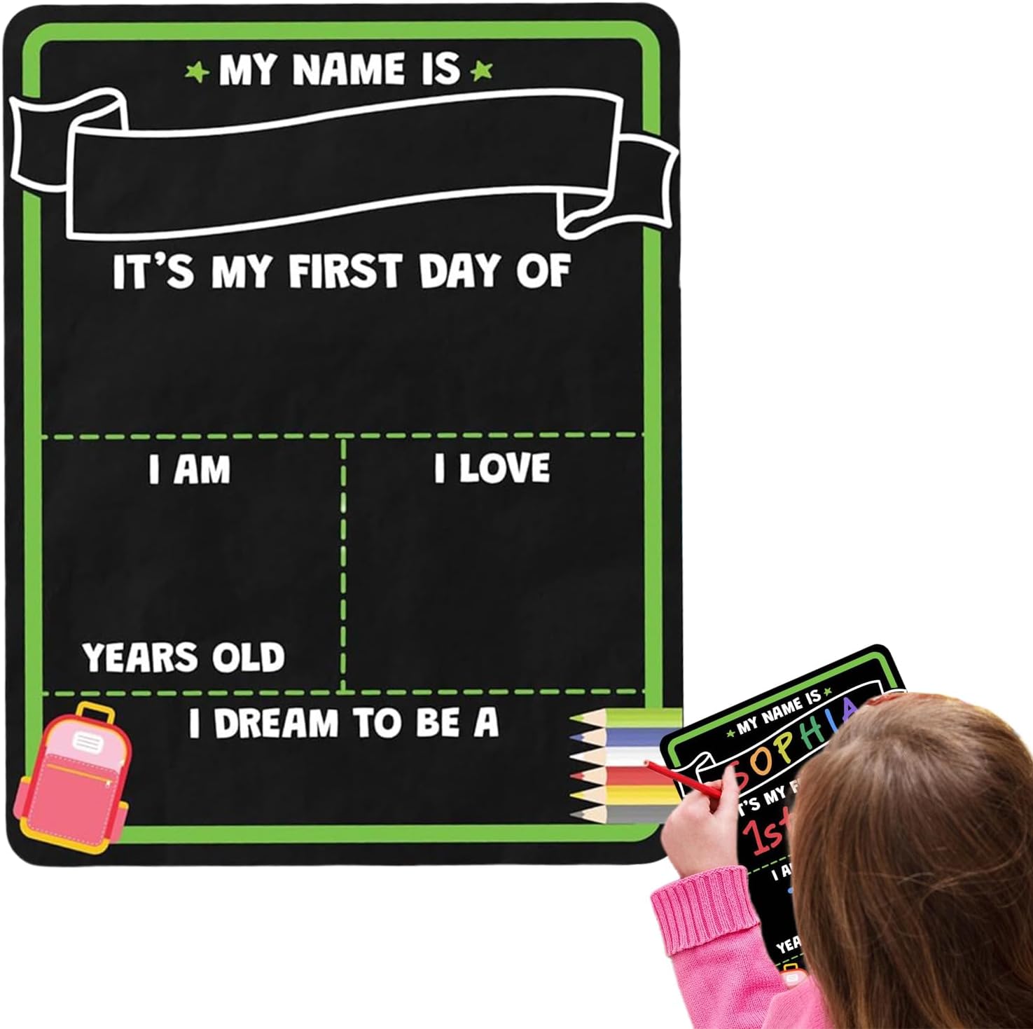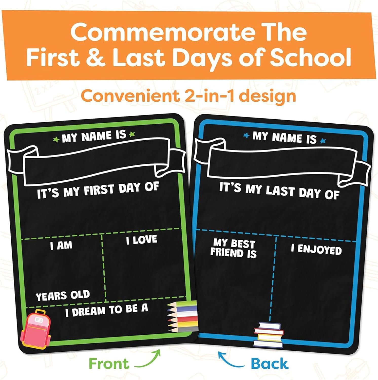 DUREVOLE: Realizzato per durare per anni scolastici consecutivi, questo cartello riutilizzabile manterrà le sue condizioni originarie nonostante l'uso regolare durante il rientro a scuola e gli ultimi giorni di scuola. Cartello anno scolastico: Un accessorio giocoso che regala al bambino della scuola un'atmosfera festosa, ideale da utilizzare in classe e per creare foto ricordo del primo giorno di scuola con originalità ed emozione Indicatore di crescita personalizzato: Questo cartello bifacciale è ideale per immortalare il primo giorno di scuola, seguendo lo sviluppo del bambino e creando ricordi preziosi per ogni anno scolastico e fornendo un supporto per documentare il suo sviluppo. REGALO PREMUROSO PER GIOVANI STUDENTI: Creato per celebrare una pietra miliare speciale, questo cartello è un'opzione squisita per bambini in età prescolare, ragazzi, ragazze e studenti. Cattura ricordi preziosi per gli studenti ed è ideale per le famiglie che cercano tradizioni di inizio significative. Compatibile con il gesso: perfetta per il gesso, la struttura robusta resiste all'uso ripetuto e la pulizia è semplice con un panno umido, garantendo una preparazione semplificata per ogni nuovo anno scolastico.
