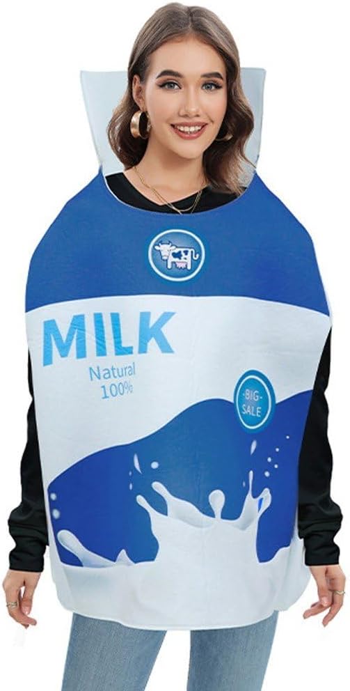 Lavare i capi e appenderli ad asciugare. Per prevenire la perdita di colore, evitare di candeggiare o stirare questo vestito. Costume da latte unisex adulto, taglia unica, ideale per le feste! Questo costume unisex è realizzato in poliestere, senza materiali improvvisati. Unisex adulto – Taglia unica. Indossalo per le prelibatezze di Halloween, le feste a tema e i concorsi in costume.