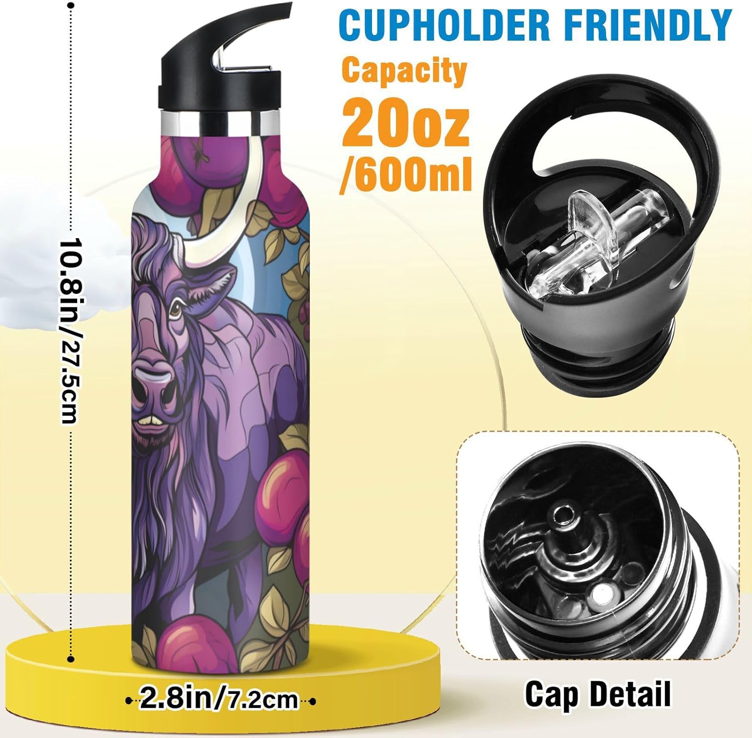 Cartone Animato Viola Frutta Della Mucca Borraccia per Bambini in Acciaio Inossidabile Termica a Vuoto per Ragazzi e Ragazze (600 ml)