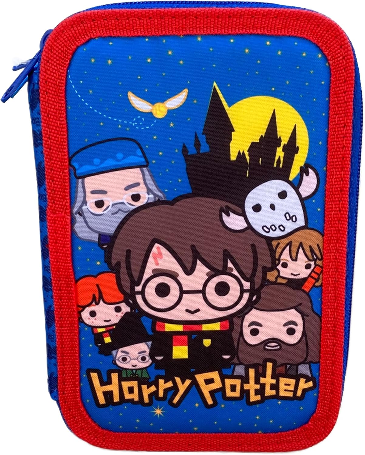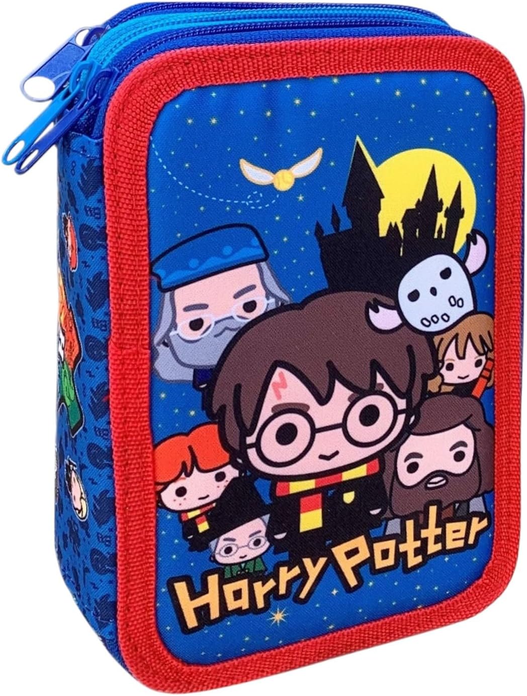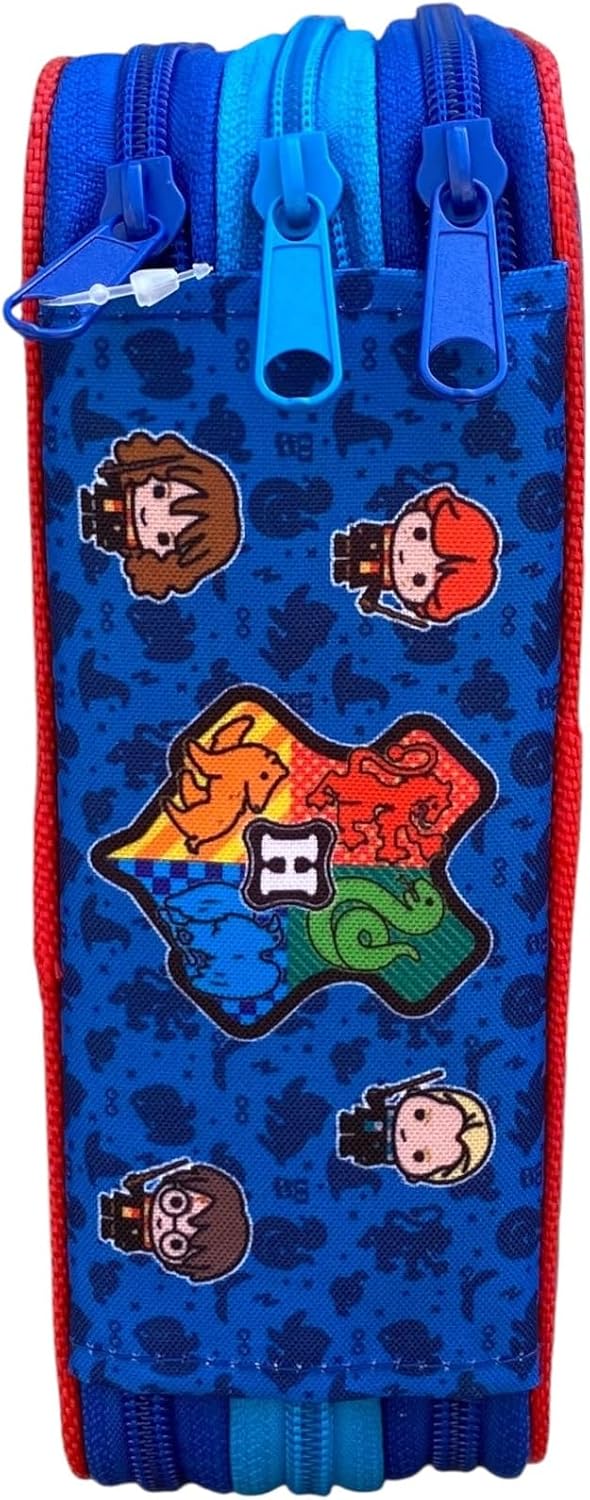 L’astuccio multiscomparto di Harry Potter è un must-have per tutti i giovani fan del magico mondo di Hogwarts! Con un design originale e colorato, questo astuccio permette di tenere in ordine tutto il materiale scolastico, accompagnati ogni giorno dai protagonisti della saga più amata di sempre. Realizzato con materiali robusti e di alta qualità, l’astuccio è progettato per resistere all’uso quotidiano e durare nel tempo. È diviso in tre comodi scomparti con zip, ognuno pensato per organizzare al meglio la cancelleria scolastica. Nel primo scomparto: troverai una matita, una penna rossa, una penna blu, una gomma, un temperamatite, un righello, un paio di forbici in plastica (sicure per bambini) e una tabella oraria settimanale. Nel secondo scomparto: 18 pastelli Norex con spazio per scrivere il nome del bambino. Infine nel terzo scomparto: 18 pennarelli Giotto Turbo Color, ideali per disegni e attività creative. La copertina è decorata con un'illustrazione allegra e vivace dei personaggi principali — Harry, Ron, Hermione e altri amici di Hogwarts — tutti raffigurati in una dolcissima versione chibi, dallo stile cartoon. I colori predominanti sono il blu, il rosso e il celeste, che donano all’astuccio un look moderno e accattivante, perfetto per ogni piccolo mago o strega. Le dimensioni compatte di 20 x 13 x 6 cm rendono l’astuccio facile da inserire in qualsiasi zaino, ma abbastanza spazioso da contenere tutto ciò che serve per la scuola. Perfetto per ogni giovane fan della saga, l’astuccio multiscomparto di Harry Potter unisce funzionalità e magia, trasformando ogni giornata scolastica in un'avventura da vivere tra pozioni, incantesimi e amicizia!
