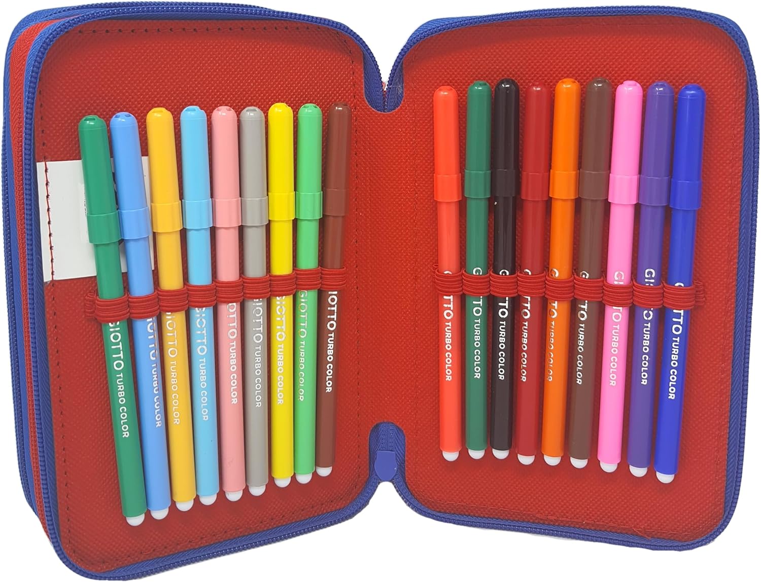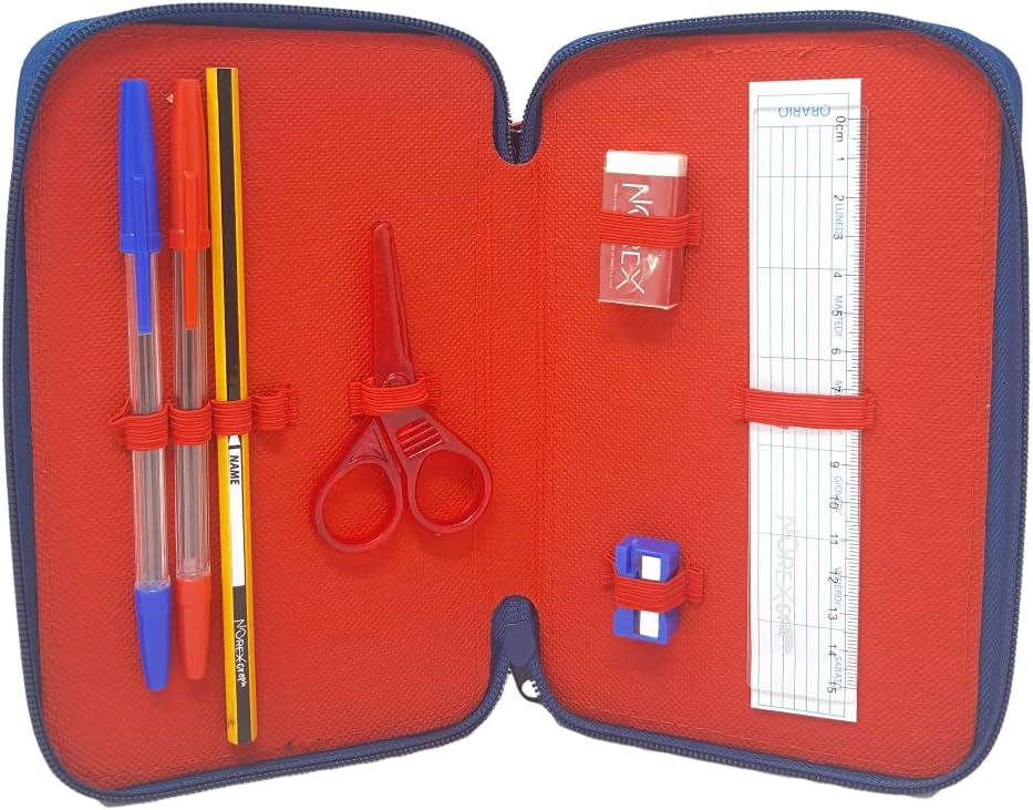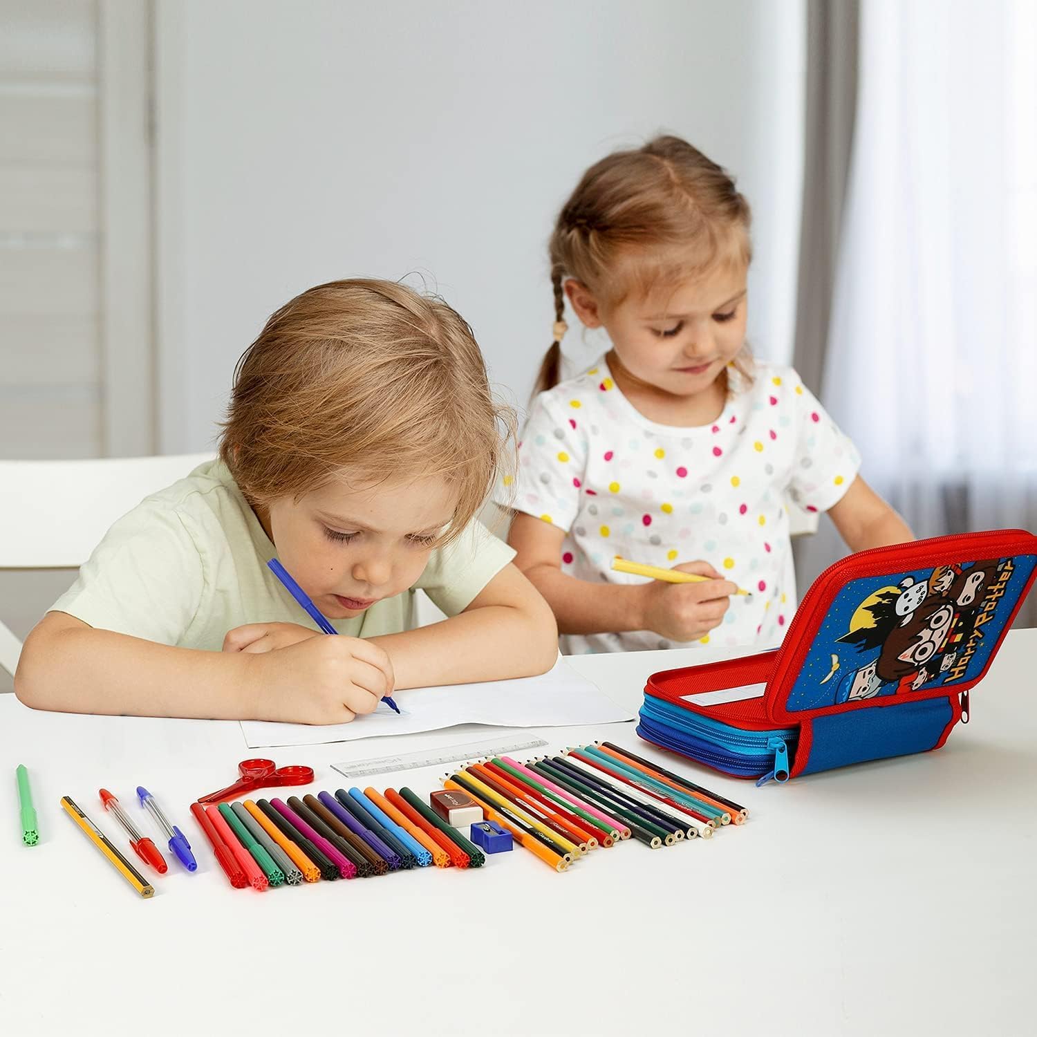 L’astuccio multiscomparto di Harry Potter è un must-have per tutti i giovani fan del magico mondo di Hogwarts! Con un design originale e colorato, questo astuccio permette di tenere in ordine tutto il materiale scolastico, accompagnati ogni giorno dai protagonisti della saga più amata di sempre. Realizzato con materiali robusti e di alta qualità, l’astuccio è progettato per resistere all’uso quotidiano e durare nel tempo. È diviso in tre comodi scomparti con zip, ognuno pensato per organizzare al meglio la cancelleria scolastica. Nel primo scomparto: troverai una matita, una penna rossa, una penna blu, una gomma, un temperamatite, un righello, un paio di forbici in plastica (sicure per bambini) e una tabella oraria settimanale. Nel secondo scomparto: 18 pastelli Norex con spazio per scrivere il nome del bambino. Infine nel terzo scomparto: 18 pennarelli Giotto Turbo Color, ideali per disegni e attività creative. La copertina è decorata con un'illustrazione allegra e vivace dei personaggi principali — Harry, Ron, Hermione e altri amici di Hogwarts — tutti raffigurati in una dolcissima versione chibi, dallo stile cartoon. I colori predominanti sono il blu, il rosso e il celeste, che donano all’astuccio un look moderno e accattivante, perfetto per ogni piccolo mago o strega. Le dimensioni compatte di 20 x 13 x 6 cm rendono l’astuccio facile da inserire in qualsiasi zaino, ma abbastanza spazioso da contenere tutto ciò che serve per la scuola. Perfetto per ogni giovane fan della saga, l’astuccio multiscomparto di Harry Potter unisce funzionalità e magia, trasformando ogni giornata scolastica in un'avventura da vivere tra pozioni, incantesimi e amicizia!