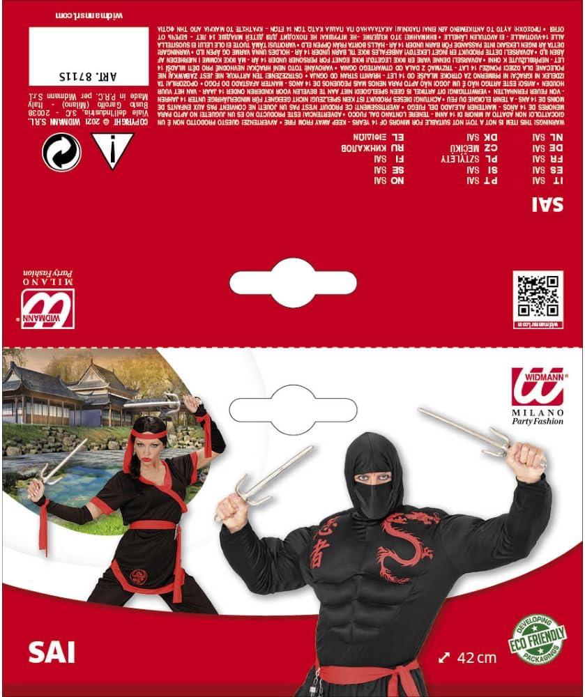Descrizione prodotto La coppia di spade SAI è l'accessorio perfetto per completare un travestimento da lottatore, guerriero o ninja durante Carnevale, eventi cosplay, o giochi di ruolo. Con una lunghezza di 42 cm, queste spade offrono una combinazione ideale di stile, sicurezza e praticità, permettendo a chi le indossa di affrontare qualsiasi avventura o combattimento con destrezza e precisione. Realizzate in 100% polietilene (PE), le spade SAI sono progettate per essere leggere, resistenti e sicure per il gioco, grazie alla morbidezza del materiale. Pur avendo un design realistico e dettagliato, la loro struttura in PE garantisce che non ci siano rischi durante l’uso, rendendole adatte anche per i più giovani che vogliono divertirsi con il loro travestimento senza preoccupazioni. La lama di ciascuna spada è appuntita nella forma ma non pericolosa, mentre le impugnature sono progettate per una presa comoda e sicura, perfetta per eseguire mosse di combattimento in modo realistico. Le spade SAI sono iconiche per il loro aspetto distintivo, con due punte laterali che si estendono dalla lama principale, un design che le rende uniche e facilmente riconoscibili in qualsiasi scenario di combattimento. Ideali per completare un costume da ninja, samurai, o artista marziale, sono l'accessorio perfetto per chi vuole incarnare un guerriero esperto e astuto. Perfette per completare qualsiasi costume da guerriero, ninja o combattente e aggiungere un tocco di realismo e potenza al travestimento, queste spade SAI sono pronte per entrare in azione. Aggiungi questo accessorio e preparati a sfidare i tuoi avversari con eleganza e abilità! Composizione: 100% PE Misura: 42 Cm. Scopri i Costumi di Carnevale Correlati... Per Informazioni Contattaci allo 081 19817543 Avviso di sicurezza Non disponibile