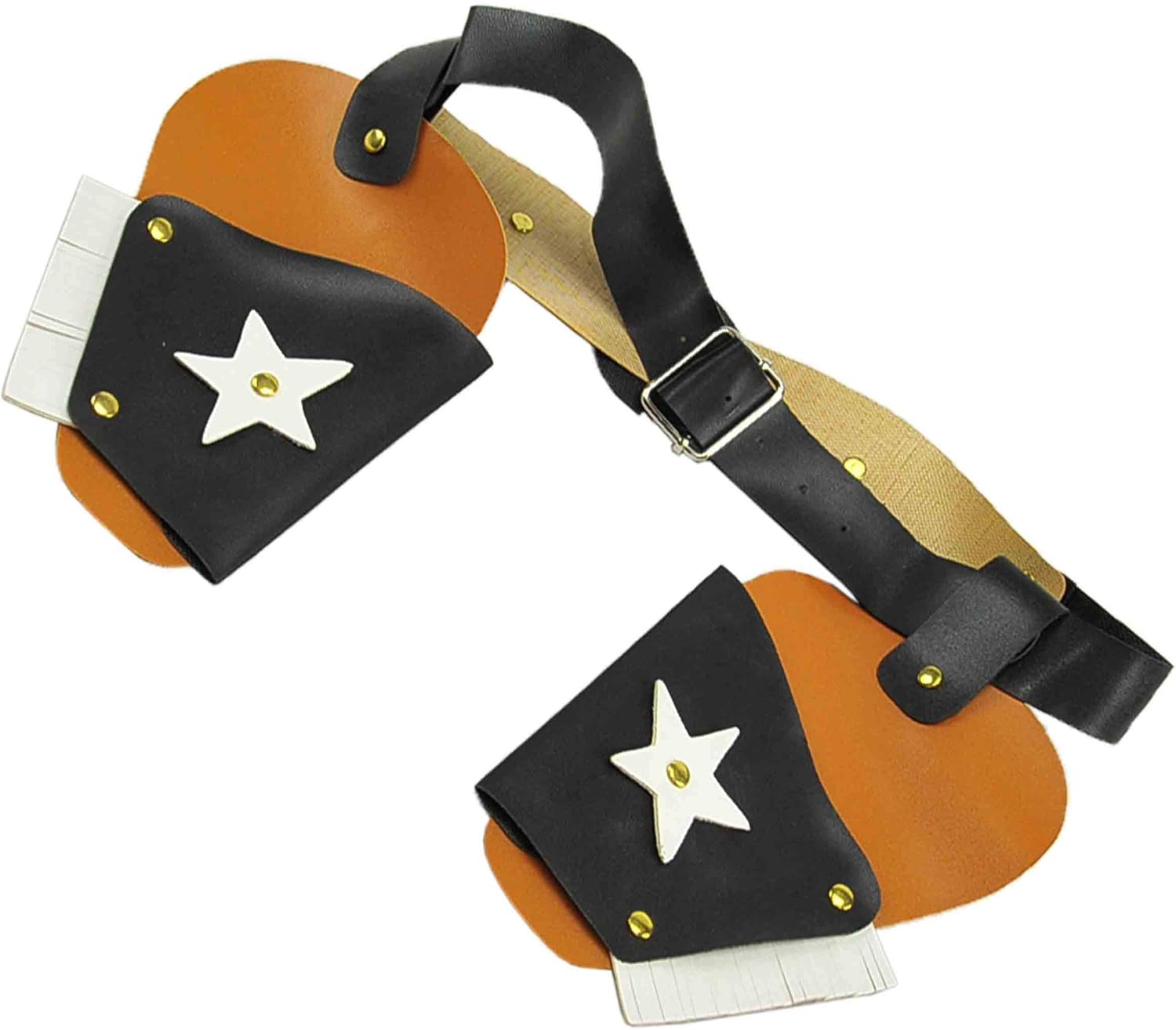 GUIRCA - CARTUCCIERA DOPPIA PER TRAVESTIMENTO COWBOY, PORTA-PISTOLE CON CINTURA Ideale complemento per travestimenti da cowboy o cowgirl. Pistole non incluse. Ideale per diverse occasioni: feste in maschera, Carnevale, Halloween, party in costume, feste di compleanno, recite, commedie, etc...