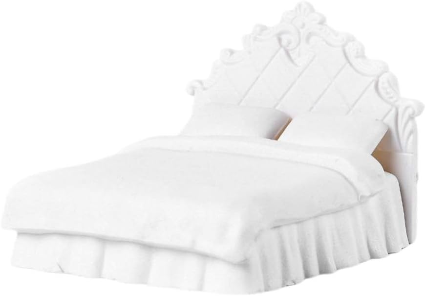 Modello in miniatura in plastica bianco letto per tavolo sabbia modelli accessori fai da te. Nota: questo prodotto deve essere assemblato da soli. Perfetto per casa delle bambole e layout di edifici! Scala: 1:20 Anche per la decorazione di mobili della casa delle bambole.