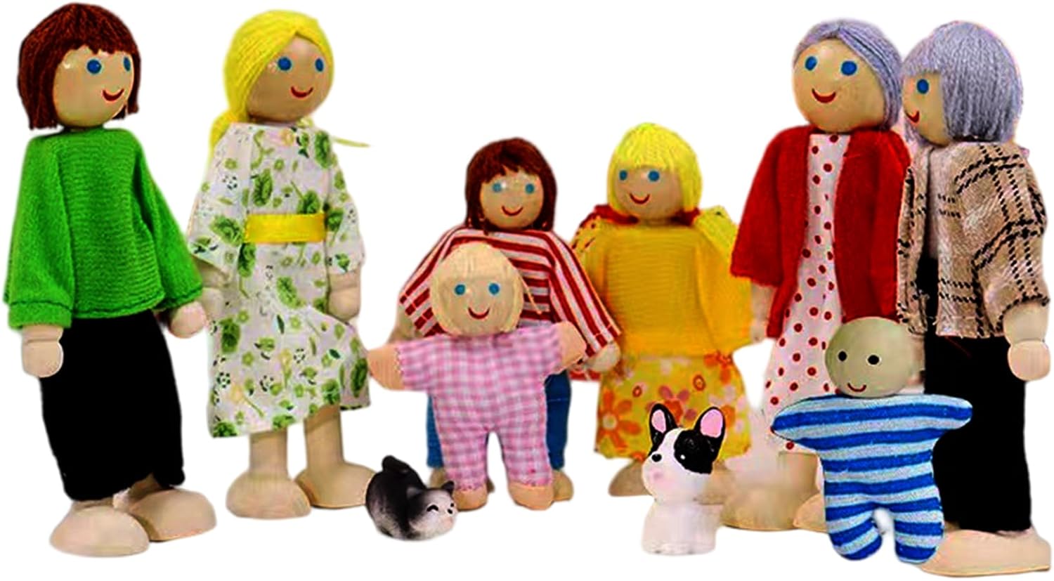 Educativo e divertente: promuove le capacità motorie, l'interazione sociale e la creatività attraverso giochi di ruolo pratici con coinvolgenti bambole di legno per ambienti di case delle bambole Dimensioni e dettagli perfetti: dimensionato perfettamente per completare le case delle bambole standard con dettagli finemente intagliati per aumentare l'autenticità visiva e il divertimento tattile Materiali sicuri e non tossici: realizzati con vernici ecologiche e sicure per i bambini e finiture lisce, garantendo un gioco senza preoccupazioni per i bambini di tutte le età Figure snodabili in legno: realizzate in legno, queste figure da 10 pezzi per case delle bambole in legno sono dotate di arti articolati per una posa flessibile e realistica che migliora il gioco fantasioso Set di personaggi diversificato: include un affascinante mix di personaggi e 2 animali domestici, arricchendo la narrazione della casa delle bambole e incoraggiando scenari di gioco finti creativi