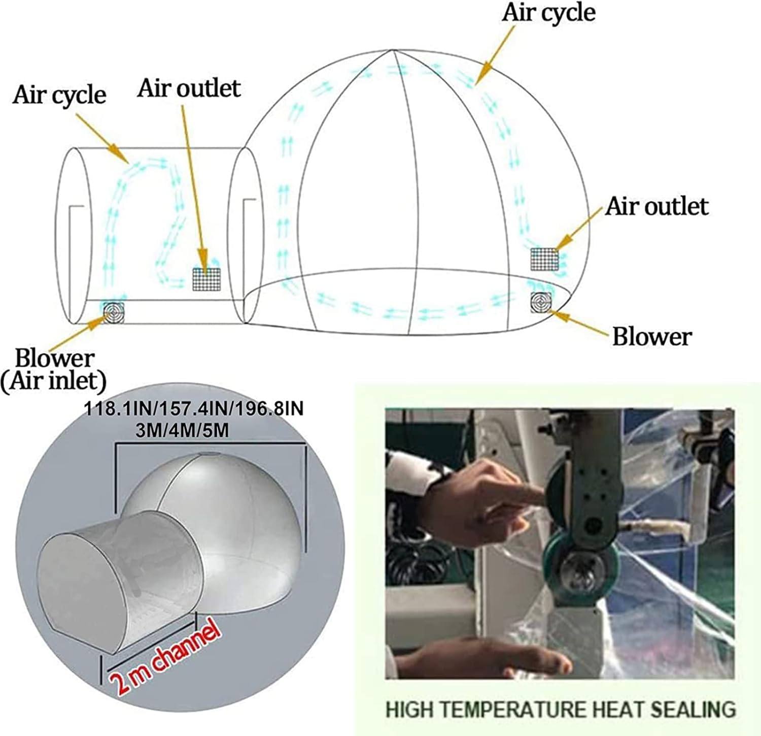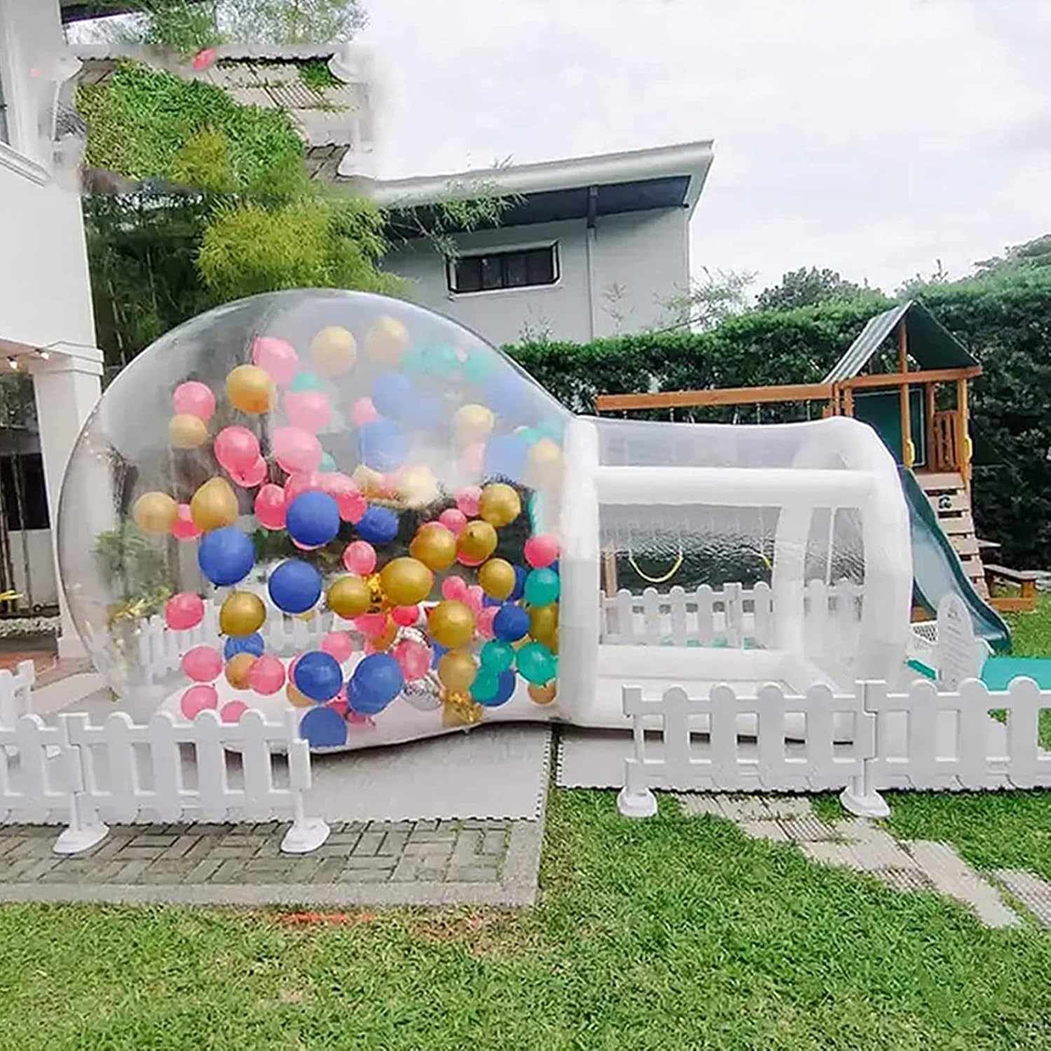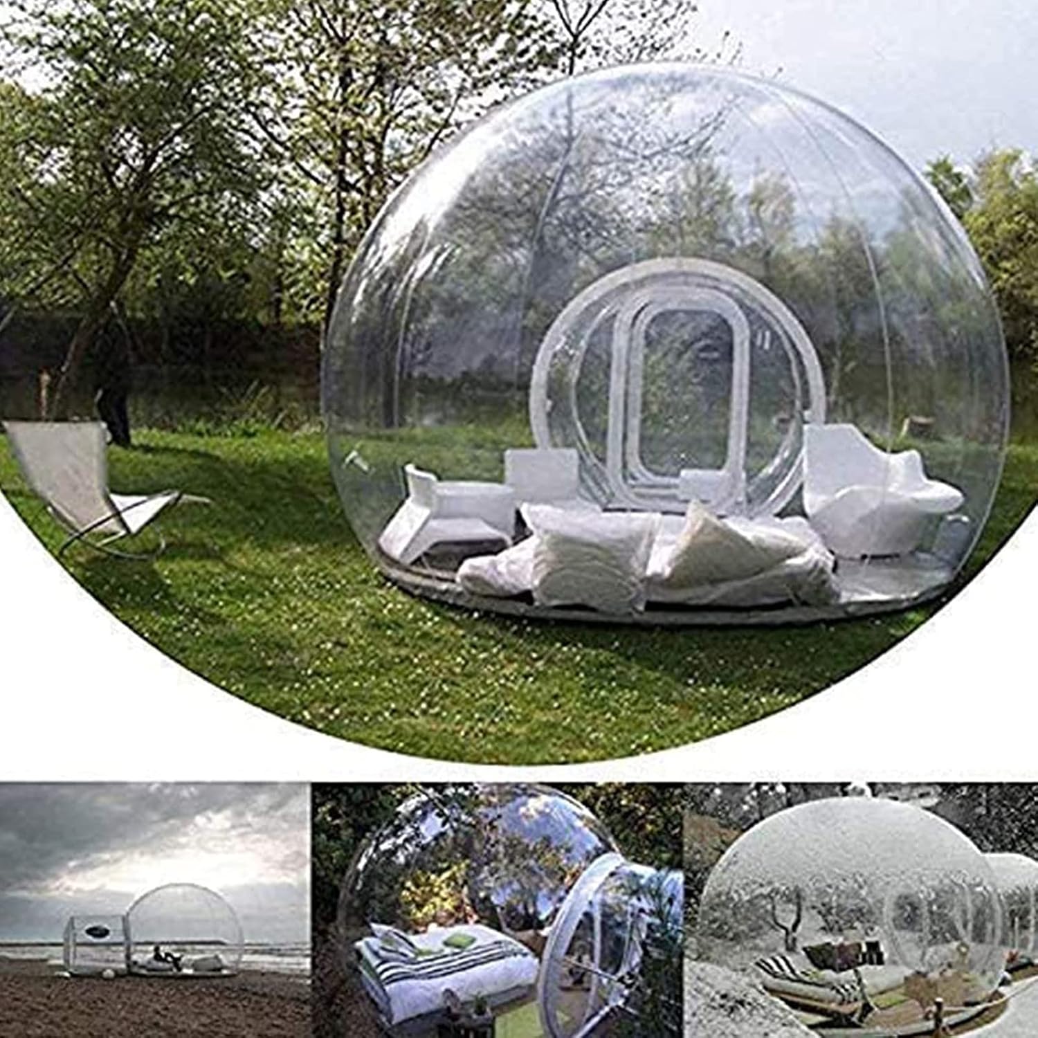 ▶ MATERIALE DUREVOLE: questa tenda gonfiabile di livello commerciale è realizzata con telone in PVC ispessito da 0,7 mm e PVC trasparente resistente, facile da pulire e mantenere. La forma unica e la selezione dei materiali lo fanno brillare come cristallo al sole e la cupola trasparente gonfiabile offre una vista panoramica a 360 gradi, molto adatta per attività all'aperto, riunioni, feste. Il suo design ▶ DESIGN UNICO: la casa/tenda gonfiabile è un prodotto nuovo e visivamente accattivante in grado di attirare l'attenzione degli altri. La casa delle bolle gonfiabile è dotata di un asciugacapelli ad alta potenza da 750 W, che può essere gonfiato in pochi minuti. Puoi acquistare palloncini e inserirli, il che può ottenere l'effetto del volo in mongolfiera, che è molto adatto per attività impegnative. ▶ AMPIO UTILIZZO: questa tenda a bolle a cupola ha molteplici usi. Può essere utilizzata come tenda da campeggio, parco giochi per bambini, decorazione per feste, osservazione delle stelle di notte o divertimento senza fine ed emozioni in occasione di matrimoni, feste ed eventi aziendali.