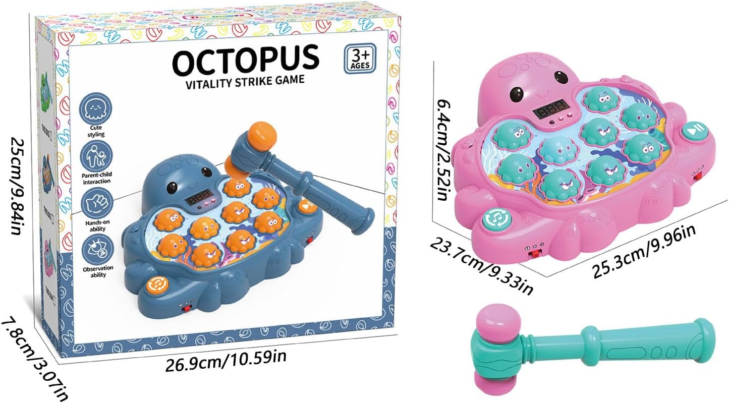Dimensioni portatili: la costruzione monopezzo con tentacoli pieghevoli consente il massimo comfort e lo stoccaggio salvaspazio, ideale per interni ed esterni Attiva giocosamente: grazie alle funzioni illuminanti e agli effetti sonori, il gioco della talpa rafforza giocosamente l'attenzione e la destrezza migliorando la coordinazione occhio-mano Regolazione dinamica: livelli di difficoltà multistadio e un sistema di punti reattivi premiano la resistenza e l'equità in ogni sessione di gioco per il massimo impegno Piacere intergenerazionale: la configurazione a due giocatori consente un gameplay coinvolgente per grandi e piccini, crea senza sforzo il tempo in famiglia divertente e rafforza le connessioni attraverso esperienze condivise Costruzione robusta: realizzato con materiali durevoli con superfici lisce per la massima sicurezza, resistente alle cadute e all'usura anche in caso di uso intensivo, promuove le abilità di apprendimento attraverso il divertimento