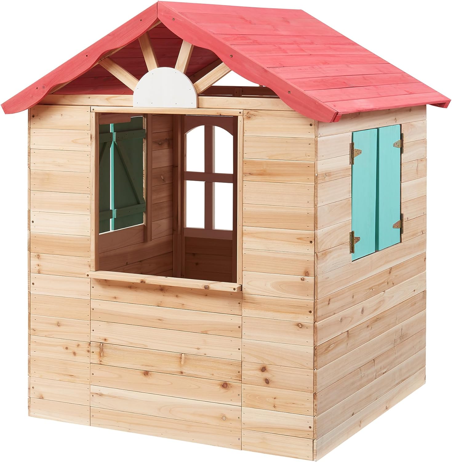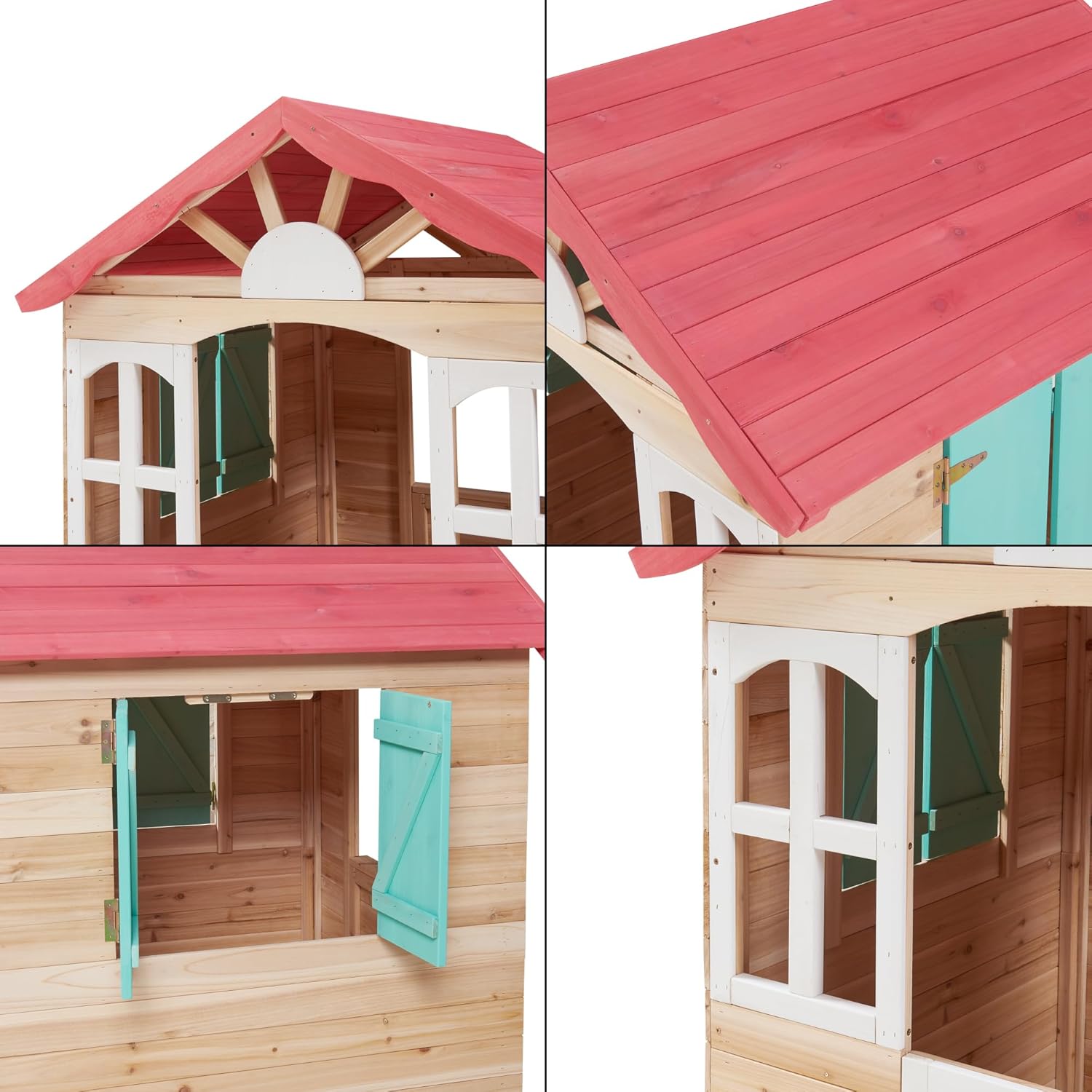 Oltre a essere un luogo di puro divertimento, la nostra casetta è pensata per stimolare la crescita dei bambini sotto molteplici aspetti. Aiuta a sviluppare la creatività, permettendo loro di inventare storie e giochi, e favorisce anche lo sviluppo delle abilità sociali, offrendo uno spazio dove condividere momenti di gioco con gli amici. Un piccolo rifugio che rende l’infanzia ancora più speciale e ricca di esperienze. È realizzata in legno di abete che garantisce solidità e durabilità nel tempo. Grazie alla sua capacità di resistere agli agenti atmosferici, è ideale per essere utilizzato all'aperto. Le tonalità calde creano un'atmosfera accogliente e naturale, che si integra con la vegetazione del giardino. La superficie liscia offre una finitura piacevole al tatto, invitando i bambini a esplorare e giocare dove la natura e la fantasia si incontrano. Il tetto spiovente permette un efficace deflusso dell’acqua piovana, mantenendo l’interno asciutto, mentre l'assenza di un fondo chiuso è un elemento pratico che impedisce il ristagno dell'acqua, assicurando un ambiente sempre sicuro per il gioco. Inoltre, il davanzale sul retro offre uno spazio aggiuntivo dove i bambini possono riporre i loro giochi o piccoli tesori, rendendo la casetta ancora più funzionale. Ogni dettaglio è pensato per aggiungere fascino e carattere. I telai bianchi creano un contrasto delicato con il legno naturale e gli scuri verdi pratici e stilosi. Il tetto rosso, con il suo colore vivace, dona calore e originalità, rendendola facilmente riconoscibile. La luce naturale inonda l'interno attraverso il lucernario, creando un’atmosfera accogliente e serena, perfetta per ogni momento di gioco e fantasia. Prima di utilizzarla, è importante leggere attentamente le istruzioni e le linee guida sulla sicurezza. Questo assicurerà che tutte le parti siano correttamente assemblate e che la struttura sia stabile e sicura. È progettata per uso domestico e destinata a bambini di età superiore ai 3 anni. Seguire queste indicazioni garantisce un ambiente di gioco sicuro e appropriato, permettendo ai piccoli di godere delle loro avventure all'aria aperta senza rischi inutili.