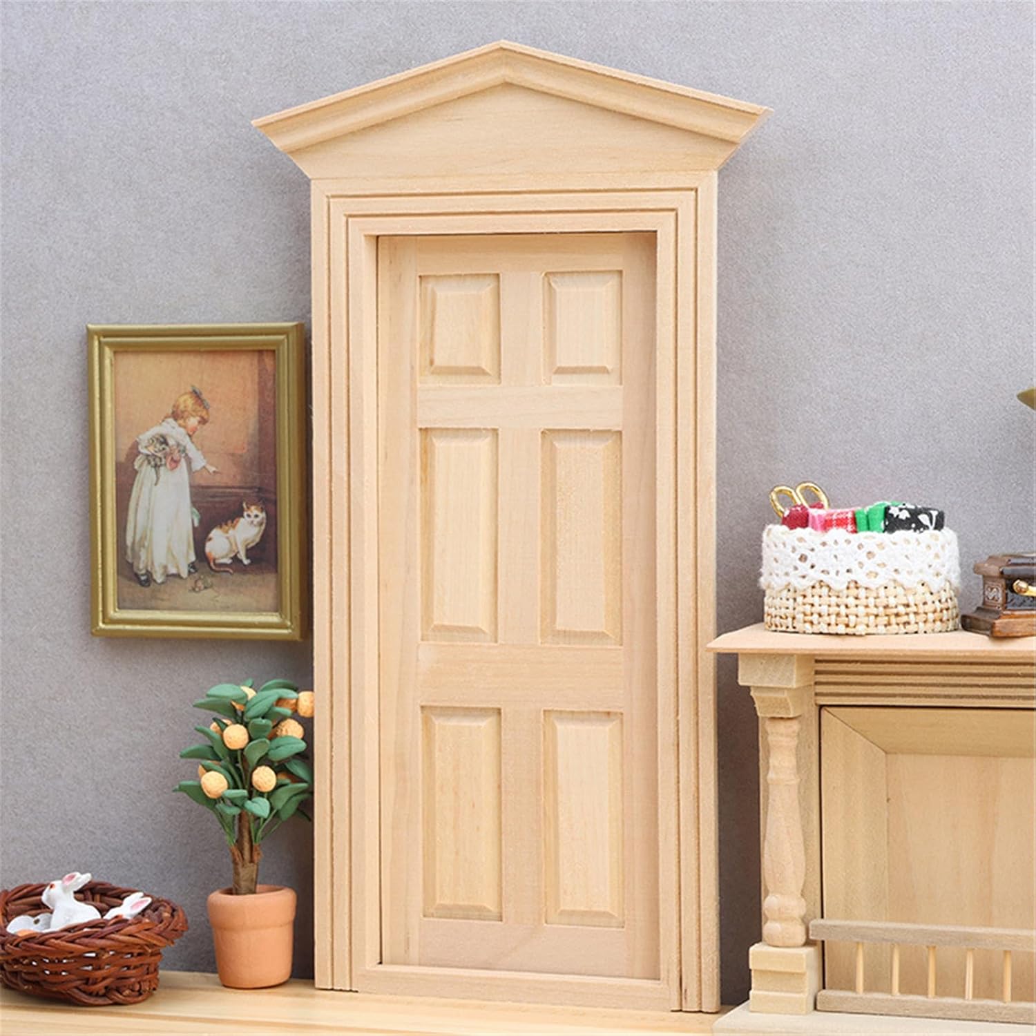 Struttura in legno, resistenza all'usura, sicura per i bambini Modello di porta, realistico e adatto per la decorazione della casa delle bambole Con una buona stimolazione e formazione educativa per i bambini, stabilisce le loro capacità cognitive nel soggiorno della casa delle bambole e promuove la coordinazione occhio-mano dei bambini Adatto per giochi di finzione e anche per decorazioni per case delle bambole Un modello di gioco decorativo, non una vera porta