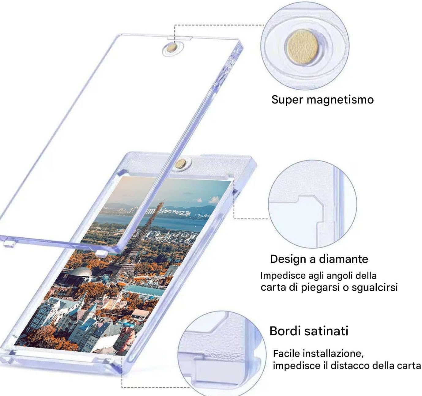 Chiusura magnetica sicura: progettata con una chiusura magnetica, le maniche a carta dura assicurano un deposito sicuro e prevengono cadute accidentali, offrendo un accesso senza sforzo e la salvaguardia delle carte da potenziali efficacemente Protezione a colori di lunga durata: schede di scudo dai raggi UV che utilizzano acrilico resistente alla dissolvenza, offrendo protezione a lungo termine contro l'ossidazione mantenendo i colori vividi nei display di stoccaggio Difesa a tutto tondo: consegna di difesa a tutto tondo, queste maniche proteggono le carte da collezione da polvere, esposizione liquida, e flessione, offrendo tranquillità per le esigenze di stoccaggio a lungo termine Soluzione di raccolta avanzata: con tecnologia senza intervalli e trasparenza totale, le maniche consentono il display a doppio lato, riducendo l'usura per fornire un processo di raccolta raffinato e migliorato Più occasioni: ingegnerizzate con principi di fit universali, queste maniche garantiscono la compatibilità con le carte di dimensioni standard, fornendo una memoria multi-card senza soluzione di continuità in un'unica soluzione pratica