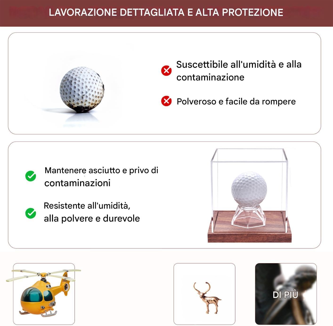 Clear Acrilic UV Shield: proteggi la tua piattaria da golf preziosa in una vetrina acrilica chiara completamente visibile, proteggendola dai raggi UV per evitare ingiallimento o sbiadimento mantenendo il suo aspetto per un divertimento duraturo Presentazione migliorata della pallina da golf: questa vetrina include un supporto incorporato per contenere la pallina da golf ad un angolo attentamente scelto, garantendo una configurazione esteticamente piacevole che attira l'attenzione in modo naturale Showcase stabile ed elegante: la vetrina da golf si assicura che la tua pallina da golf sia saldamente in posizione con una robusta base di legno, che combina un design elegante per una presentazione raffinata che migliora qualsiasi spazio offrendo supporto affidabile e stile Entra in un ampio utilizzo: progettato per un uso versatile, questa vetrina è una decorazione ideale per spazi abitativi e di casa, fornendo sia praticità che stile per esibire tue palline da golf preferite in modo attraente Conveniente Showcase da golf palline: la scatola trasparente fornisce una soluzione pratica per visualizzare la tua collezione di palline da golf, senza alcuna montaggio, inizia deliziosa la comodità 'uso immediato posizionando la pallina da golf direttamente all'interno