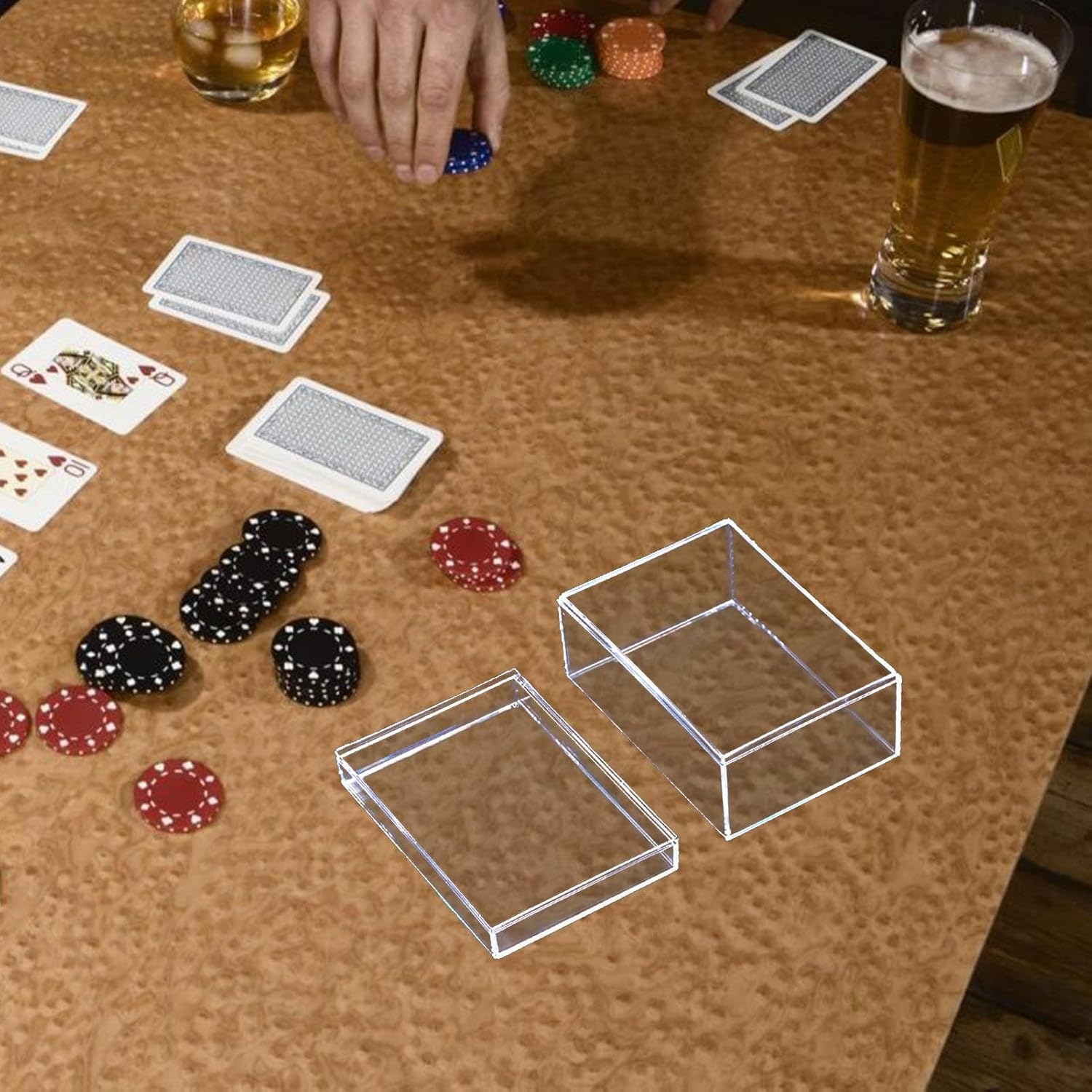 Facile da usare: organizza e archivia le tue carte da gioco con facilità utilizzando le nostre scatole di archiviazione rettangolare per le carte da gioco. Progettato per adattarsi a tutti i tipi di carte da gioco. Box di archiviazione trasparente: fornendo una buona esperienza utente, le nostre scatole di archiviazione di carte da gioco trasparenti rendono senza sforzo trovare e visualizzare le tue carte, garantendo un uso piacevole. Design affidabile: realizzato in PVC di alta qualità, le nostre scatole di stoccaggio delle carte da gioco offrono protezione, garantendo che le carte rimangono in ottime condizioni. Sicuro per l'uso e costruito per durare, sono la scelta affidabile ideale. Facile da accedere: comodo per accedere, aperto e chiuso senza intoppi con coperchio unico, garantendo che le tue carte rimangono pulite e organizzate. Può offrire una buona esperienza utente. Attraente scatola di archiviazione: organizzando le tue carte da gioco in un'elegante scatola di archiviazione, questo prodotto aggiunge un fascino visivo e migliora l'estetica del lavoro.