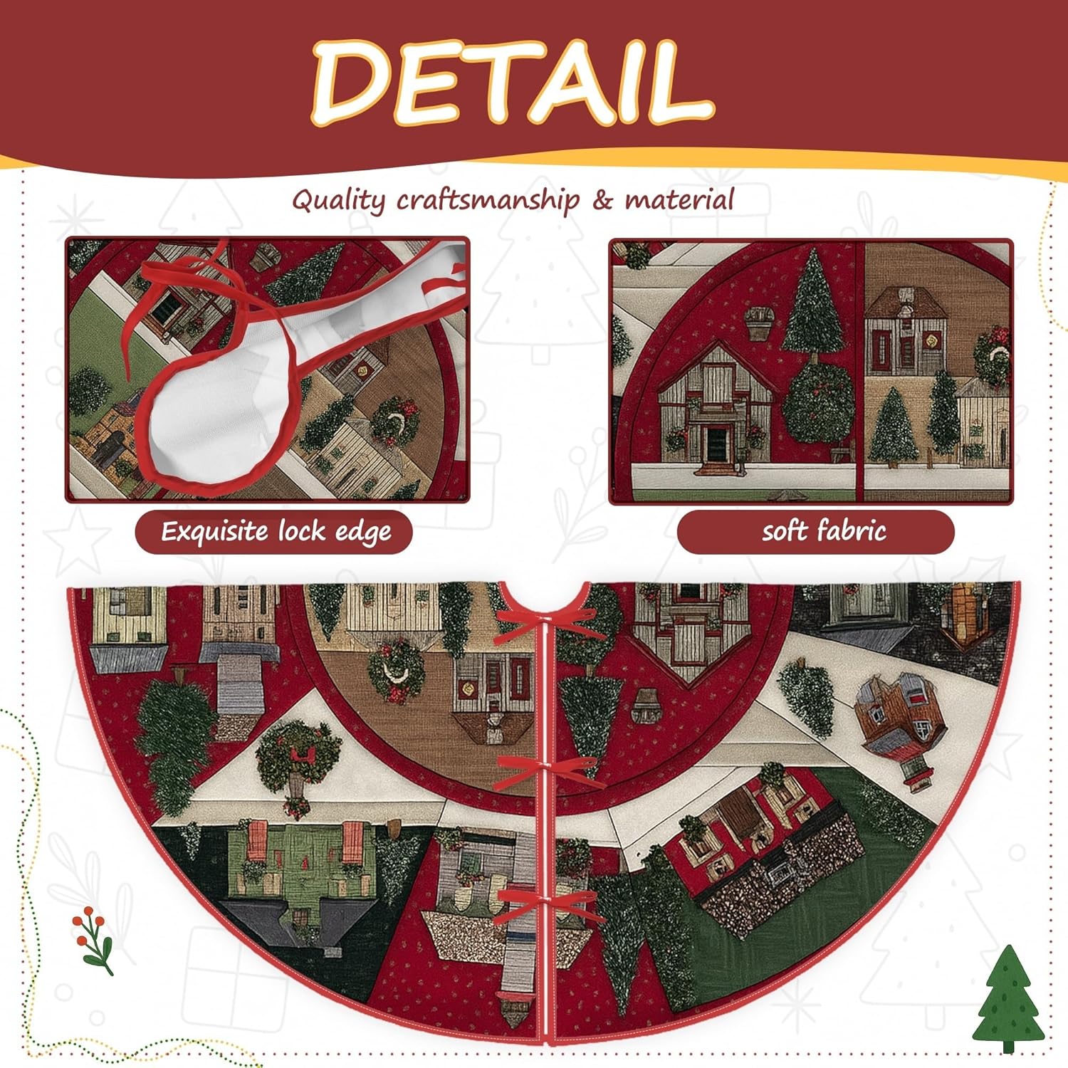【Materiale e consistenza】 Realizzato in tessuto con cuciture rinforzate, garantisce durata e una consistenza morbida che completa la decorazione delle tue vacanze. Facile da pulire: questa gonna per albero è lavabile in lavatrice per una manutenzione semplice. Non candeggiare per mantenere i colori vivaci. 【Decorazione e atmosfera natalizia】 Crea un'atmosfera festosa con questa gonna per albero, con bellissimi disegni che celebrano la gioia del periodo natalizio. 【Pratico e facile da usare】 Progettato con un fissaggio a 3 cinghie per una facile installazione e rimozione, perfetto per raccogliere rami e conservarli dopo le vacanze. Riutilizzabile per molte stagioni. 【Versatilità e regalo】 Ideale per varie ambientazioni festive, questa gonna per albero è un regalo premuroso per amici e parenti che migliorerà le loro celebrazioni festive.