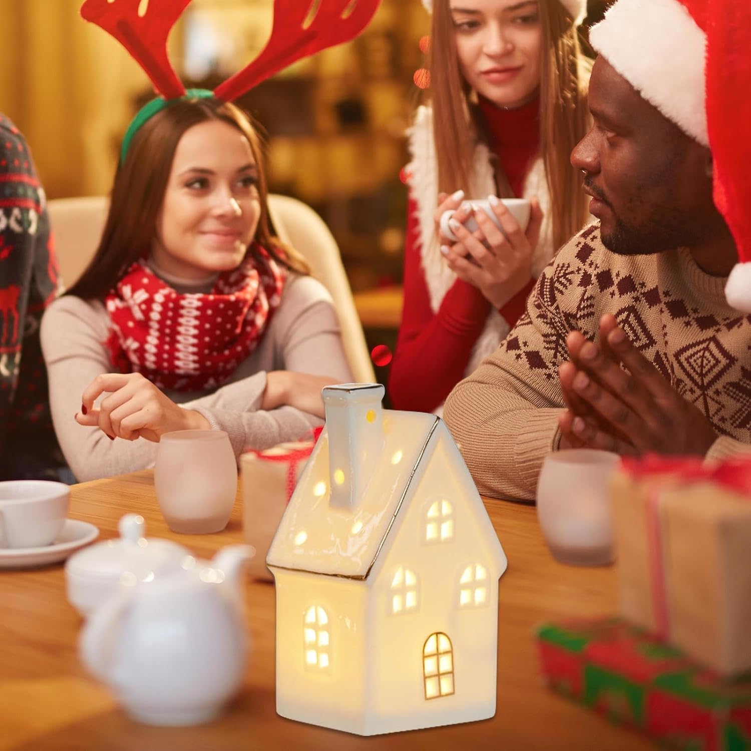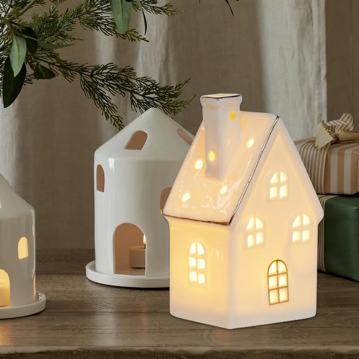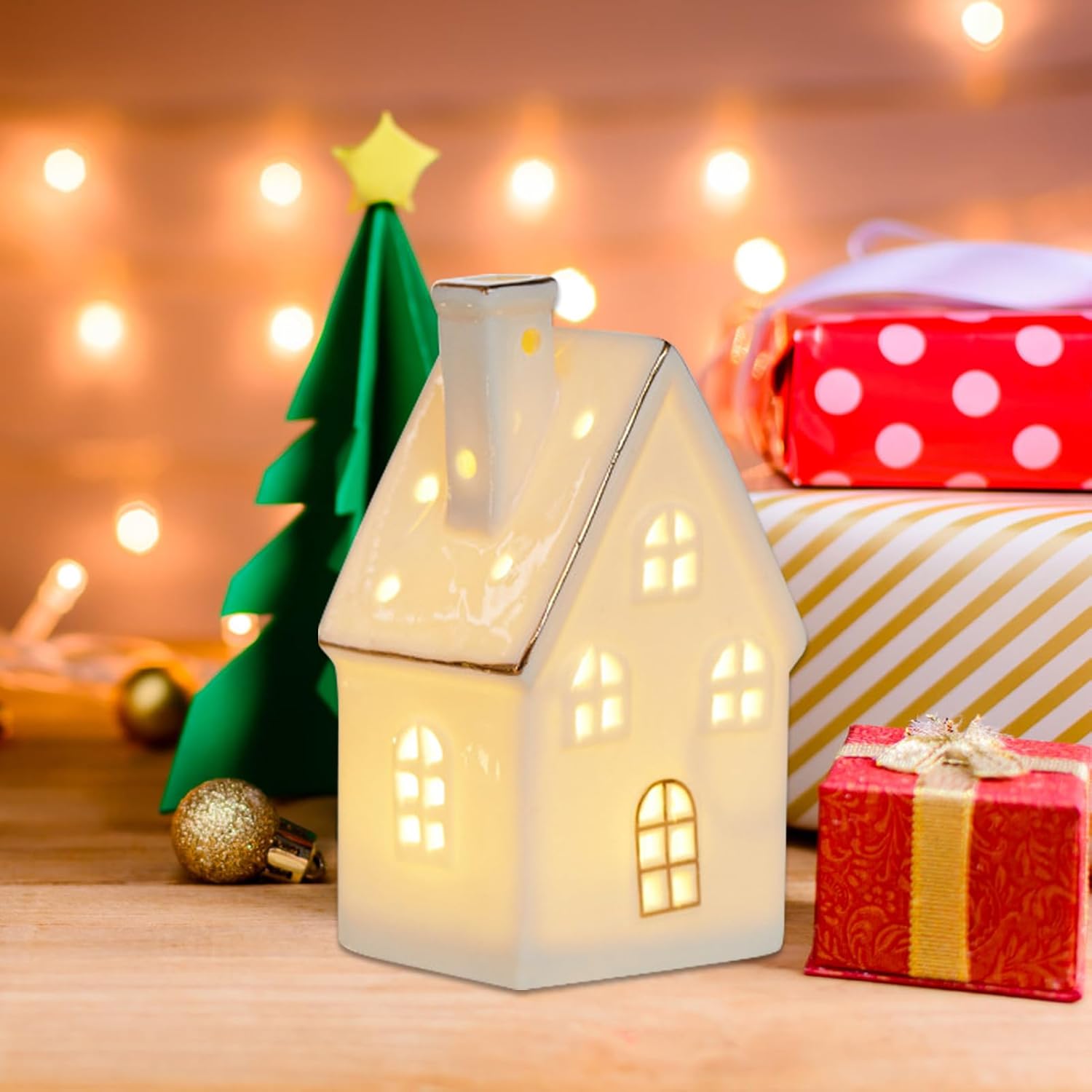 Decorazione Fiabesca: Introduce un'ambientazione fiabesca invernale coinvolgente grazie all'estetica meticolosamente progettata di una casetta innevata, garantendo versatilità decorativa e fascino visivo duraturo. Materiale Solido: Realizzate in ceramica di alta qualità, queste casette sono robuste e resistenti, garantendo lunga durata e prestazioni affidabili per le tue esigenze quotidiane Atmosfera Festosa Calorosa: Design luminoso con luci LED morbide che arricchiscono ogni celebrazione, creando un ambiente festivo accogliente e invitante per tutte le stagioni Artigianato Ricercato: Rilievi 3D mettono in mostra arte meticolosa, ricreando una scena natalizia invernale accogliente per portare eleganza nell'arredamento Valore trasversale:Completa con eleganza soggiorno, studio, camera e cameretta, offrendo soluzioni decorative coerenti per molteplici ambienti domestici attraverso un design funzionale che unisce praticità e raffinatezza discreta in modo naturale