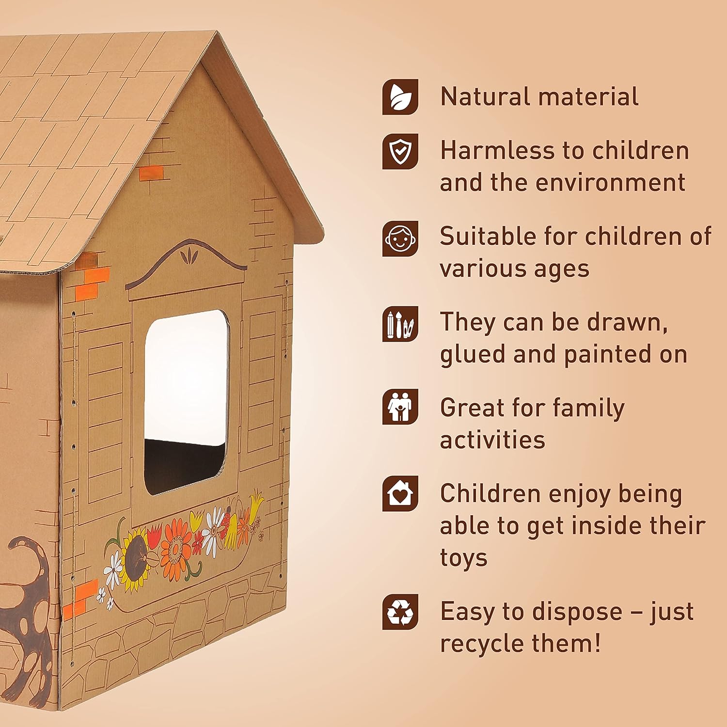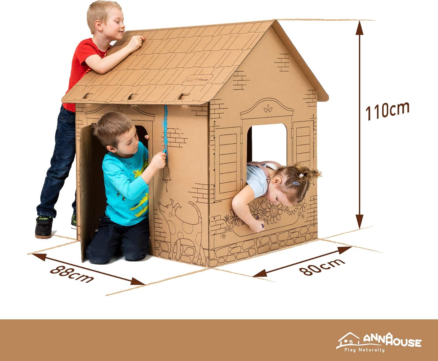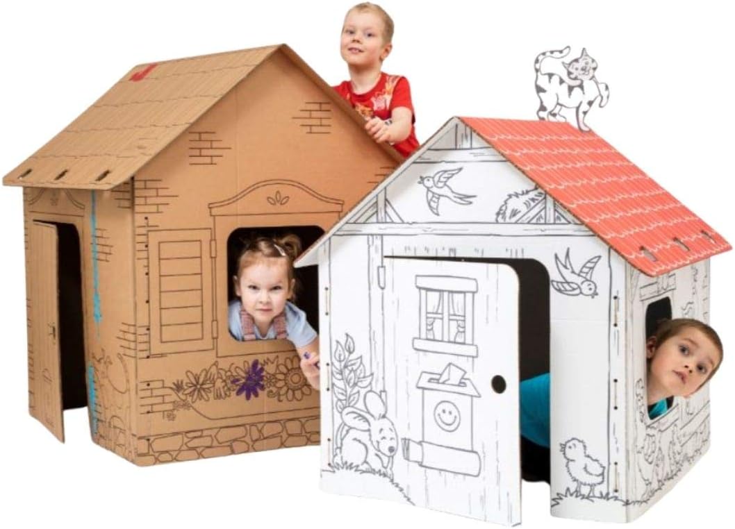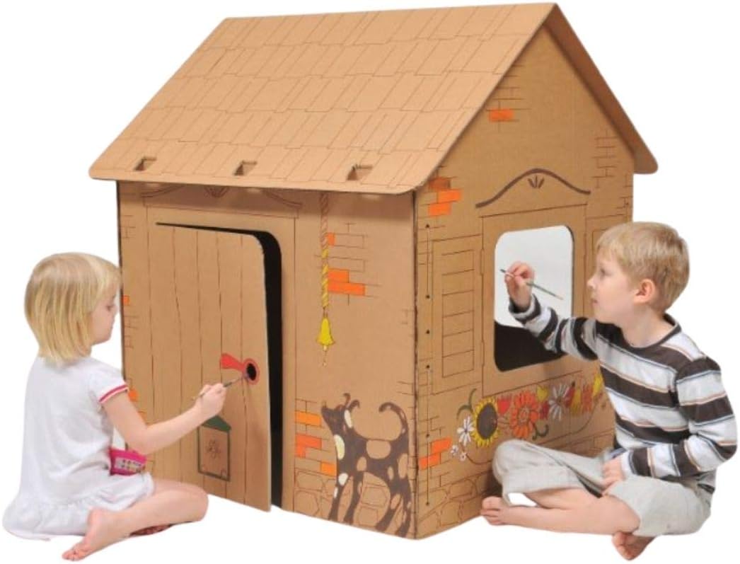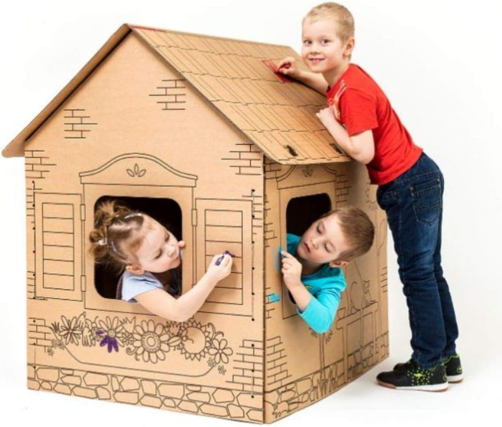 Playhouse durevole e stabile in cartone da 7 mm Dimensioni: 101 x 80 x 108 cm Divertente attività per tutta la famiglia La più bella attrazione per le feste dei bambini Rispettoso dell'ambiente e dei bambini
