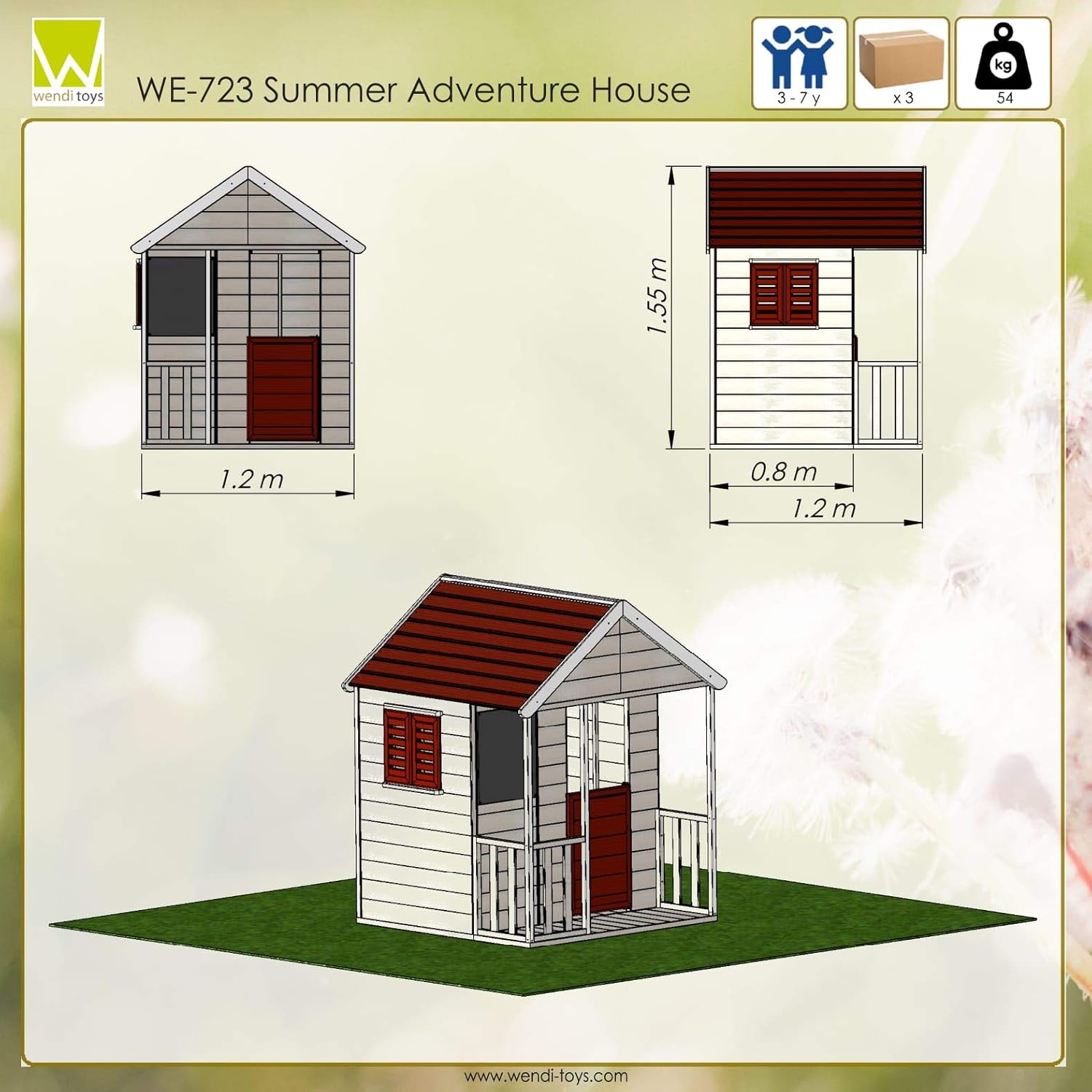 Caratteristiche: misura M (120 x 120 x 155 cm) apertura casetta con balcone, scaffale per giocattoli, mezza porta, persiane, lavagna. Può essere montato con piattaforma (90 cm di altezza) e slide (175 cm di lunghezza) e altalena. Sistema modulare – I giocattoli Wendi-sono costruiti secondo un principio modulare. Ciò significa che ogni pannello standard può essere combinato con altri come un fabbricante. Aiuta a ottenere una vasta gamma di prodotti. Montaggio semplice – Le casette possono essere montate facilmente da un cliente a casa senza ulteriori fissaggi o utensili speciali. Sono incluse istruzioni dettagliate per l'installazione e la manutenzione. Qualità – Le casette soddisfano la norma europea EN-71 "Sicurezza dei giocattoli" per i giocattoli per uso domestico. Ogni sistema è testato e testato prima della consegna dallo stabilimento. Le case da gioco sono sicure ed ecologiche. Prodotto in Lettonia. Ulteriori informazioni: i giocattoli Wendi sono fatti per evitare che i bambini rimangano a casa e siedano con dispositivi tecnologici. Sono stati fatti per migliorare la salute dei bambini e la loro vita quotidiana. Playhouse offre ai bambini la possibilità di giocare fuori anche in condizioni climatiche avverse. Playhouse è una buona strada per le attività dei bambini nella propria casa da giardino. Consente di giocare e godersi le avventure che la casetta può dare ai bambini.