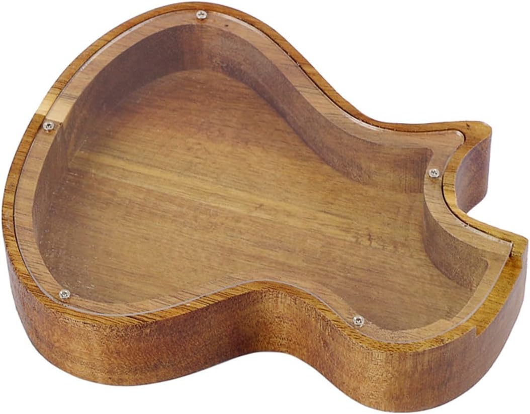 Il barattolo per monete presenta l'aspetto della chitarra, che è bello e interessante, possiede una buona funzione decorativa Le banche in legno si adattano a scrivania, comodino o libreria, possono essere un ottimo regalo per doccia, battesimo o compleanno Il barattolo per monete con corpo trasparente consente agli utenti di conoscere il numero interno della moneta Adatto per casa, camera da letto, ufficio, soggiorno e così via, pratico e decorativo Realizzato principalmente in legno naturale, resistente all'usura e durevole, per un uso a lungo termine