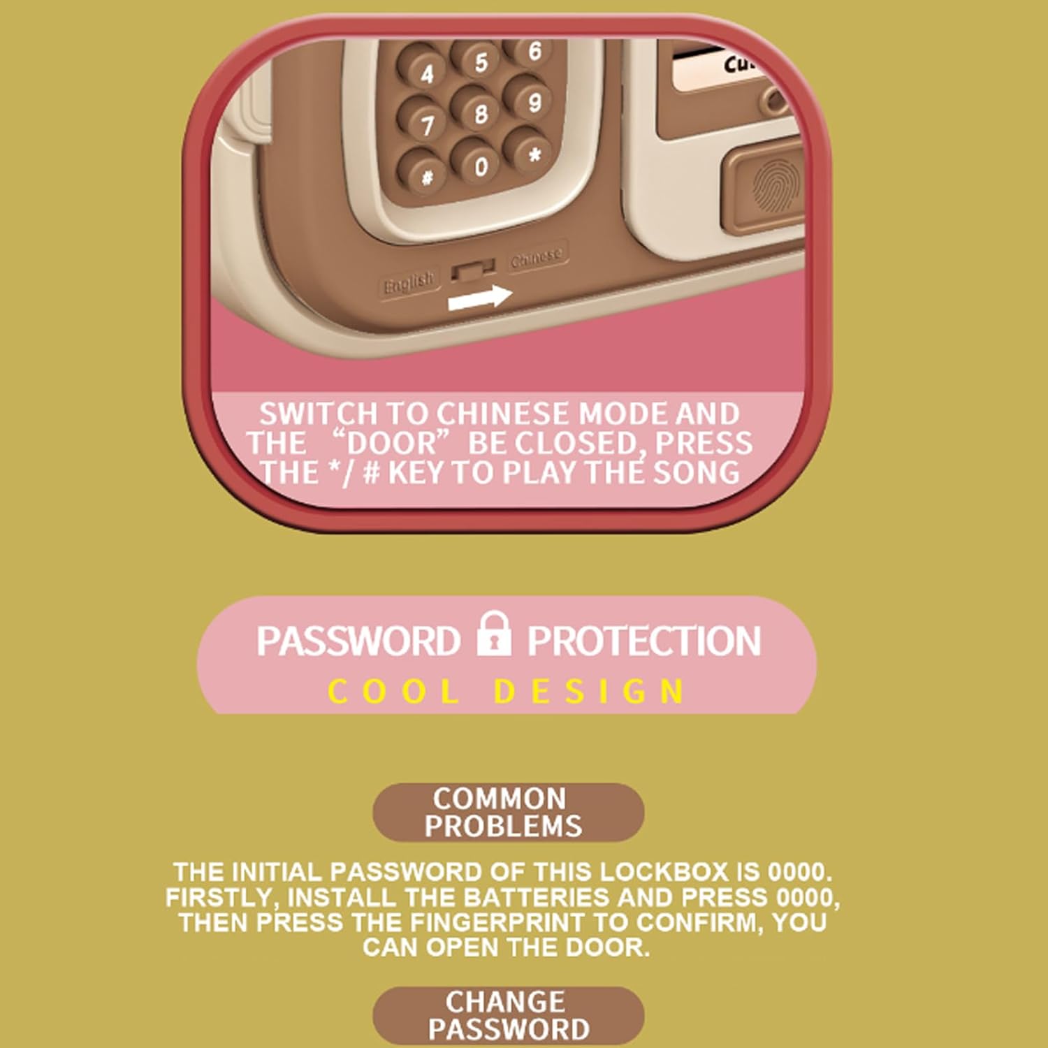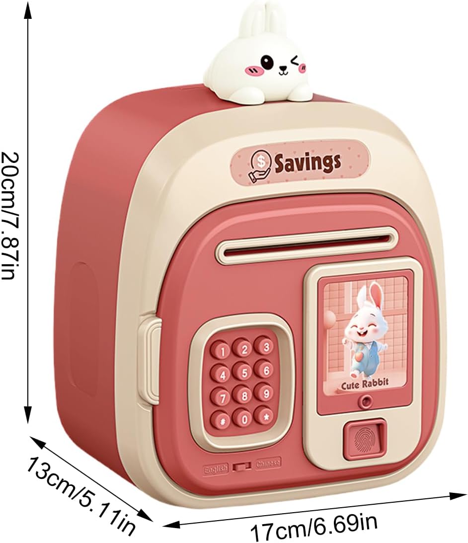 Design ingegnoso: il salvadanaio elettrico per bambini ha un design unico per incoraggiare il risparmio e rendere più interessante il prelievo di monete. Il suo processo di deposito è reso ancora più realistico con effetti sonori che aggiungono divertimento Empowerment finanziario: migliora le capacità di gestione del denaro di tuo figlio con la nostra Kids Money Bank. Utilizzando la sua funzione di rotolamento automatico del denaro, i depositi diventano un gioco da ragazzi, semplificando il processo e al stesso infondendo alfabetizzazione finanziaria e salvaguardando la consapevolezza con istruzione ed entusiasmo. Dai al futuro di tuo figlio con noi Soluzione di risparmio sicuro: promuovi l'alfabetizzazione finanziaria nei bambini con la nostra banca dei soldi. Mantieni i tuoi risparmi al sicuro con molteplici meccanismi di protezione, tra cui un blocco con password integrato e un metodo esclusivo di sblocco tramite impronta digitale Usi multiuso: tieni piccoli oggetti in 1 posto con Kids Money Bank. Ideale per giochi di ruolo, scopi educativi e decorazioni per la casa. Usalo per conservare chiavi, gioielli, caramelle e altro ancora, insegnando al stesso la responsabilità finanziaria e migliorando l'intrattenimento familiare come regalo: con i suoi design divertenti e creativi a forma di simulazione, il nostro salvadanaio per bambini è per incoraggiare i bambini ad apprendere l'alfabetizzazione finanziaria.