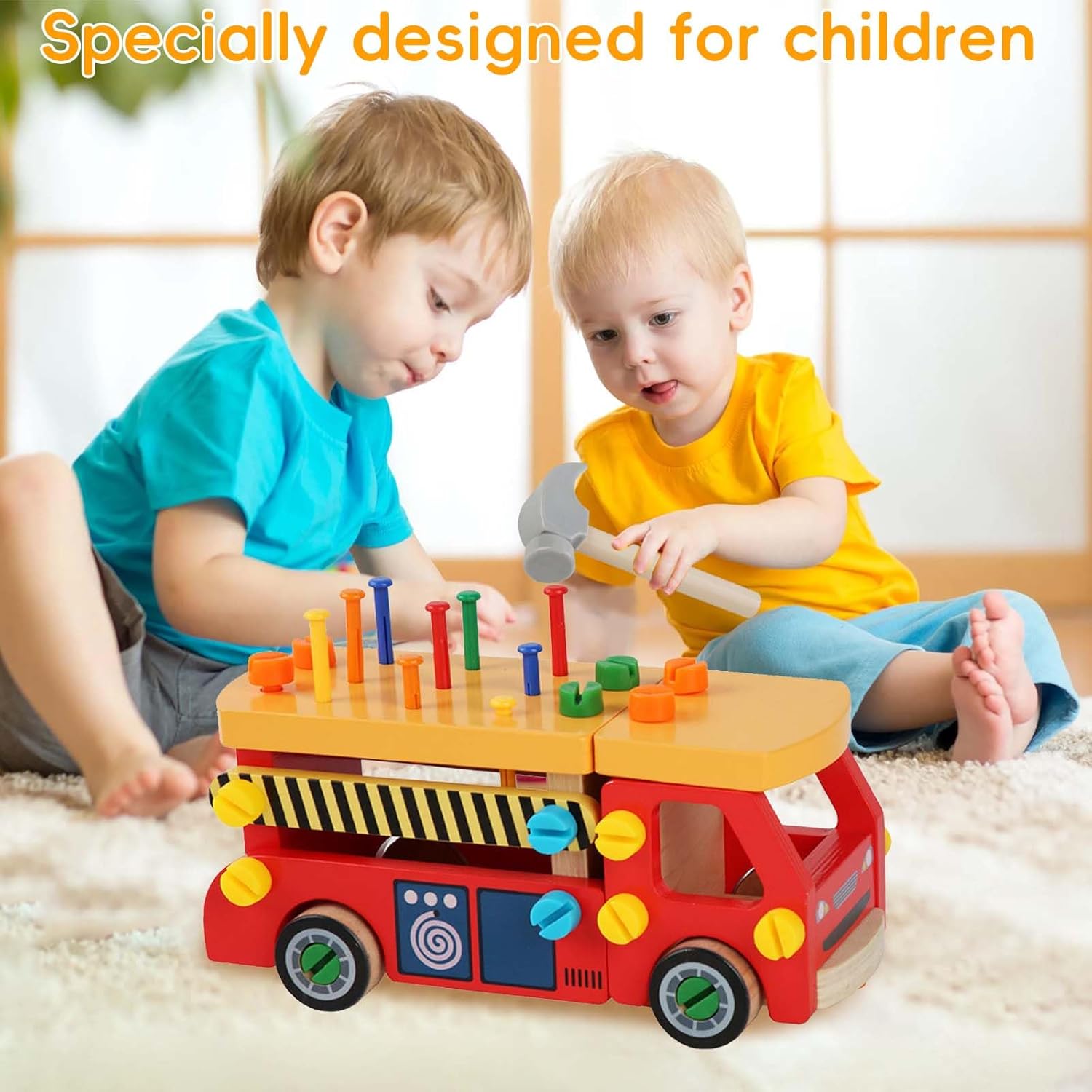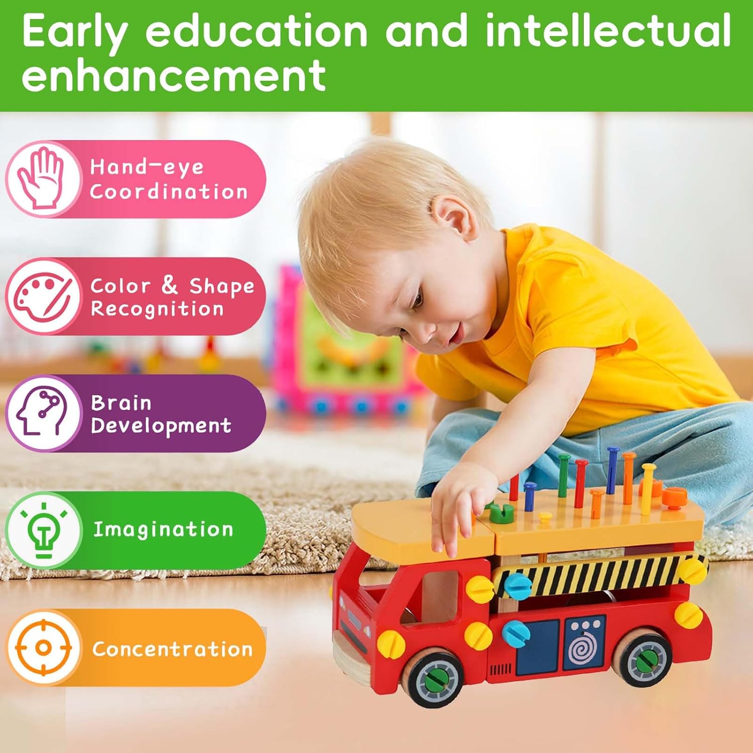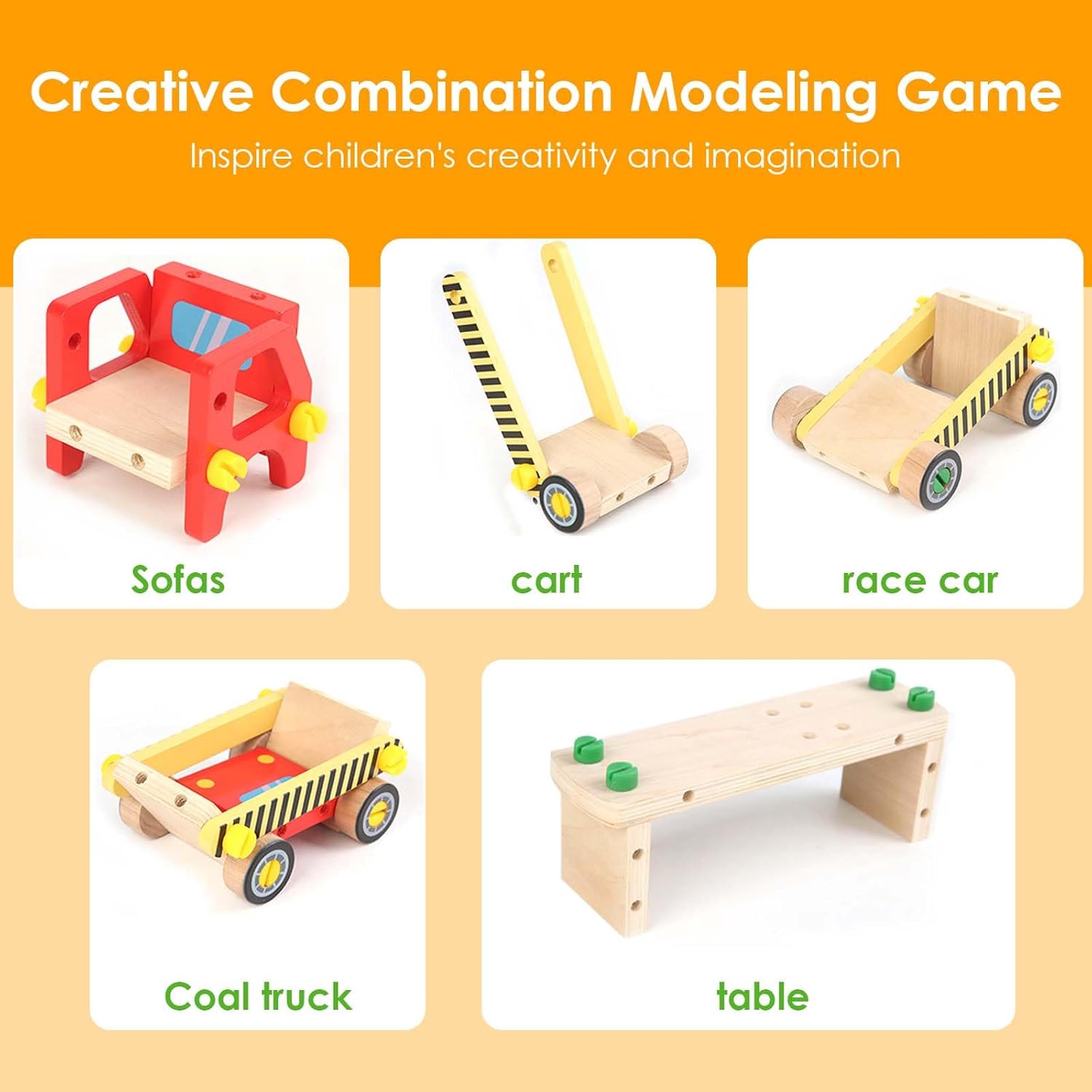 💝【Set di utensili in legno da 62 pezzi】Il set di giocattoli con cassetta degli attrezzi in legno ha ricchi accessori, tra cui 16 viti lunghe, 16 viti corte, 10 chiodi, 13 parti di binari antincendio, quattro ruote, un martello, un cacciavite e uno strumento per chiodi. Il giocattolo con cassetta degli attrezzi multifunzionale è adatto come giocattolo Montessori per bambini. 🛠【Giocattoli in legno Montessori】La macchina degli attrezzi in legno Montessori offre una vasta gamma di attività per i bambini piccoli. I bambini possono martellare chiodi, avvitare viti, ecc., evitando di usare utensili veri e di farsi male accidentalmente. Stimola le capacità motorie fini e la coordinazione occhio-mano. È più adatto a bambini di età superiore ai tre anni. 🌟【Educativo e divertente】I giocattoli educativi Montessori possono essere utilizzati come banchi da lavoro per bambini, cassette degli attrezzi e camion dei pompieri fai-da-te, testando le capacità di assemblaggio e pratiche dei bambini. Ogni piccolo ingegnere sogna di costruire i propri giocattoli. I bambini possono combinare piccole parti in vari giocattoli, come divani, auto da corsa, ecc. Incoraggia i bambini a sviluppare capacità motorie fini, coordinazione occhio-mano e capacità di risoluzione dei problemi quando manipolano strumenti e parti e stimola completamente l'immaginazione dei bambini. 🌈【Sicuro e di alta qualità】Gli accessori del set di giocattoli da banco sono realizzati in legno di alta qualità, questo set di giocattoli è liscio, senza sbavature e sicuro per i bambini. I colori vivaci e atossici aggiungono fascino visivo e stimolano l'immaginazione del tuo bambino. 🎁【Regalo di gioco di ruolo perfetto per bambini】È un fantastico giocattolo didattico che può incoraggiare i bambini a imitare gli adulti nell'uso degli strumenti, il migliore per i più piccoli per creare giochi di finzione e soddisfare la loro curiosità, anche come giocattoli interattivi per promuovere la relazione genitore-figlio durante il gioco. È una buona scelta regalo per bambine di 3 4 5 6 anni per compleanno/Natale/Vacanze.