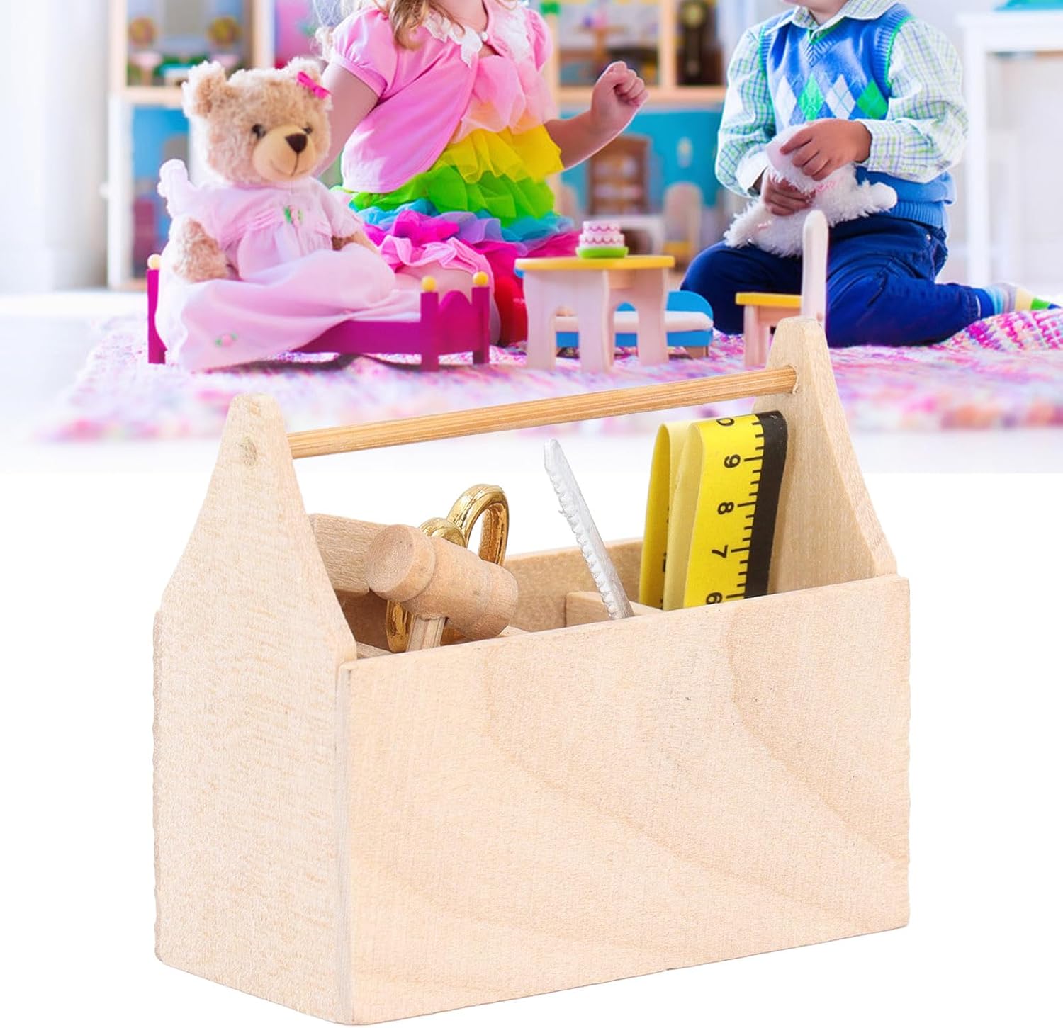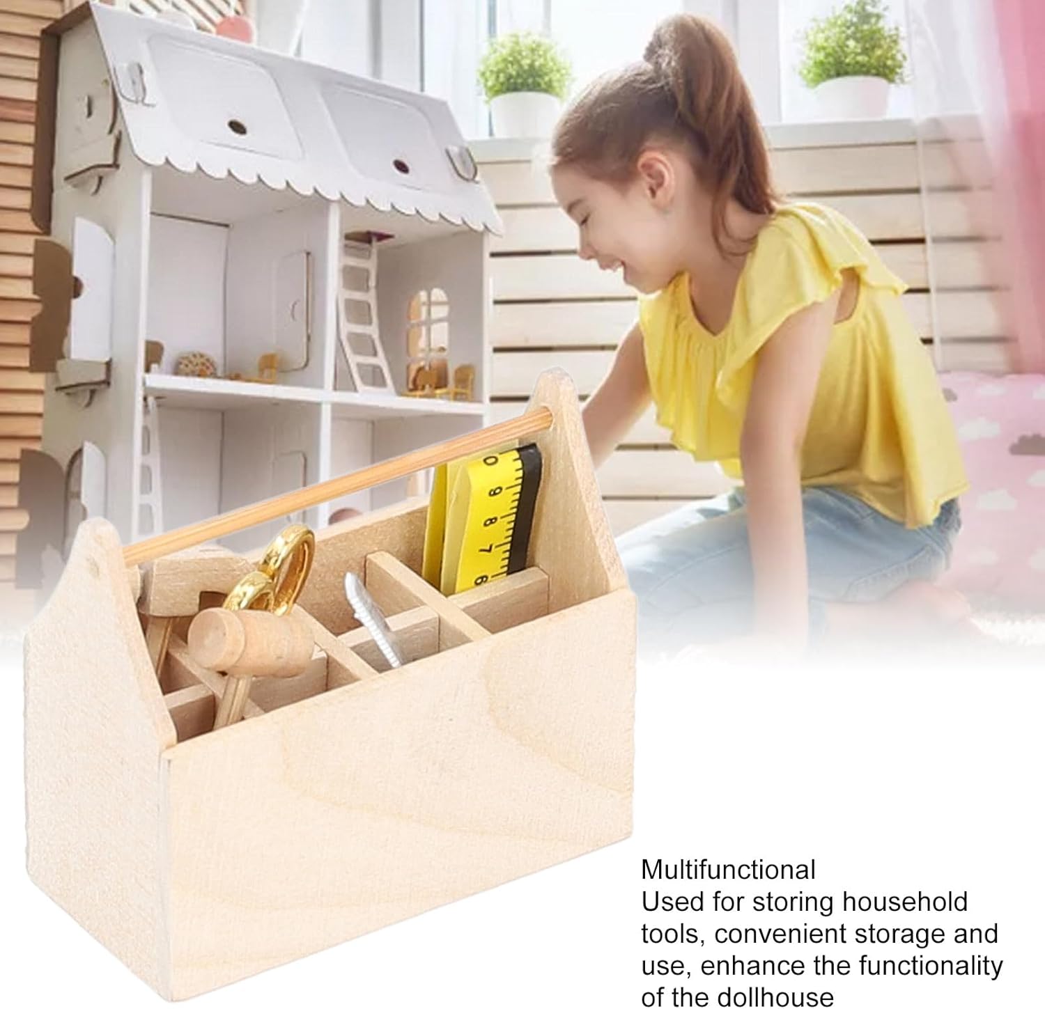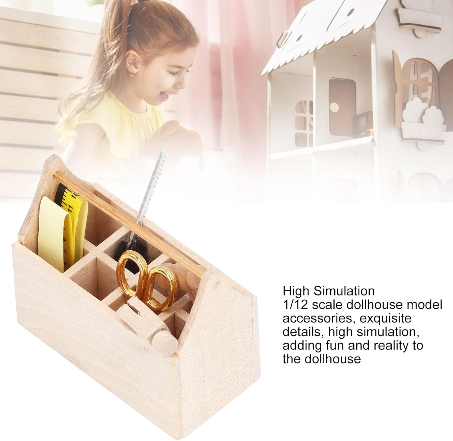 [Multifunzionale]: questa cassetta degli attrezzi in miniatura è perfetta per riporre gli utensili domestici, offrendo comodità e migliorando la funzionalità della tua casa delle bambole. [Artigianato raffinato]: realizzata con cura con bordi arrotondati lucidi e una finitura priva di sbavature, questa cassetta degli attrezzi per casa delle bambole offre dettagli squisiti e realistici, offrendo divertimento visivo e comfort tattile. [Alta simulazione]: accessori per modelli di case delle bambole in scala 1/12 con dettagli squisiti e alta simulazione, che aggiungono divertimento e realismo alla casa delle bambole. [Materiale in legno]: realizzata in legno di prima qualità, la cassetta degli attrezzi della casa delle bambole presenta un design durevole ed ecologico con un colore del legno originale. [Semplice ed elegante]: aggiungi calore e vita alla tua casa delle bambole con questa cassetta degli attrezzi elegante e di dimensioni perfette, adatta a qualsiasi stanza o scena.