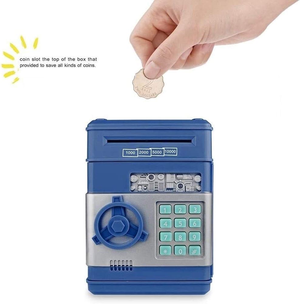 Alta capacità: è possibile conservare 600 pezzi di monete o 100 pezzi di denaro. Interessante e divertente, un oggetto indispensabile per bambini o regali, aiuta molto a sviluppare il bambino a sviluppare denaro. Password SAFE Money Casella: immettere la password 4 originale, predefinita: 0000, password modificabili Come preferisci, la luce verde sarà accesa, il bancomat può essere aperto. Se si inserisce la password sbagliata, la luce rossa si accende e il suono di "riprova" ti chiederà. Multi -scopo: memorizza in modo sicuro i tuoi soldi, gioielli, documenti, passaporti, cimeli e altro, goditi la tranquillità nel sapere che i tuoi preziosi beni e cose sono bloccati in modo sicuro, adatti per l'uso in una varietà di luoghi: casa, azienda, supermercato, centro commerciale. Materiale: utilizza la plastica ABS ambientale, nessun odore, anti-invecchiamento, durevole, adulti e bambini possono usarlo, grande capacità, dimensioni: 18,5 x 12 cm Peso netto del prodotto: 0,56 kg di potenza per batteria: 3 batterie AA, non incluse. Metodo di montaggio: ci sono fori di montaggio sul retro sicuro e le viti di espansione vengono consegnate. Puoi atterrare liberamente o usare un trapano per trapani.