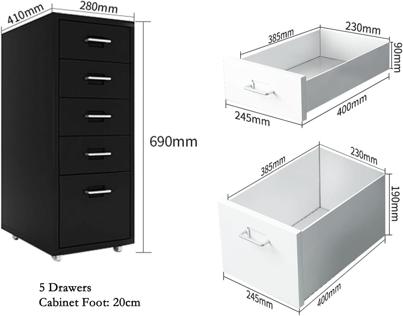 Cassettiera da ufficio/unità di archiviazione Schedario con serratura a 5 cassetti sotto la scrivania Schedario in metallo per documenti legali/lettera/A4 completamente assemblato tranne ruote per archiviazione file (Colore : MODE