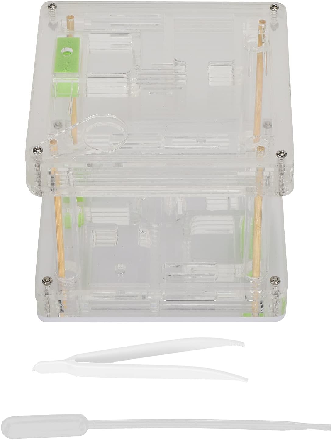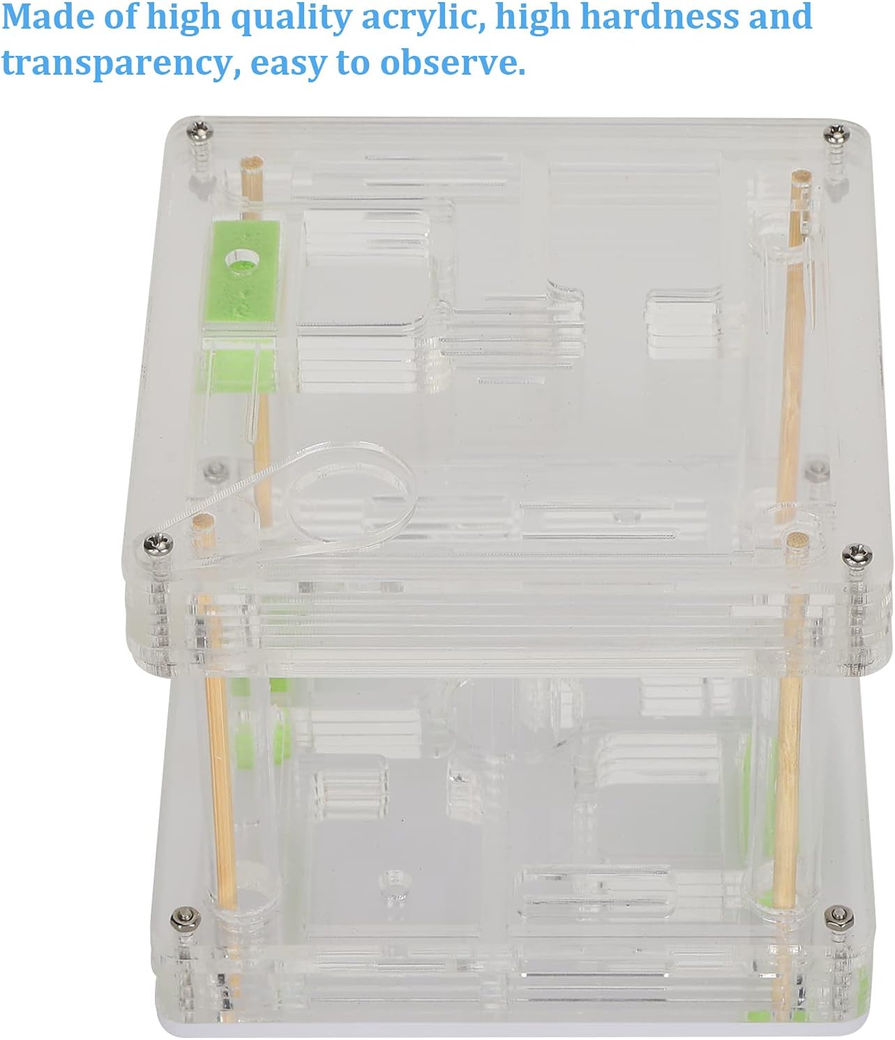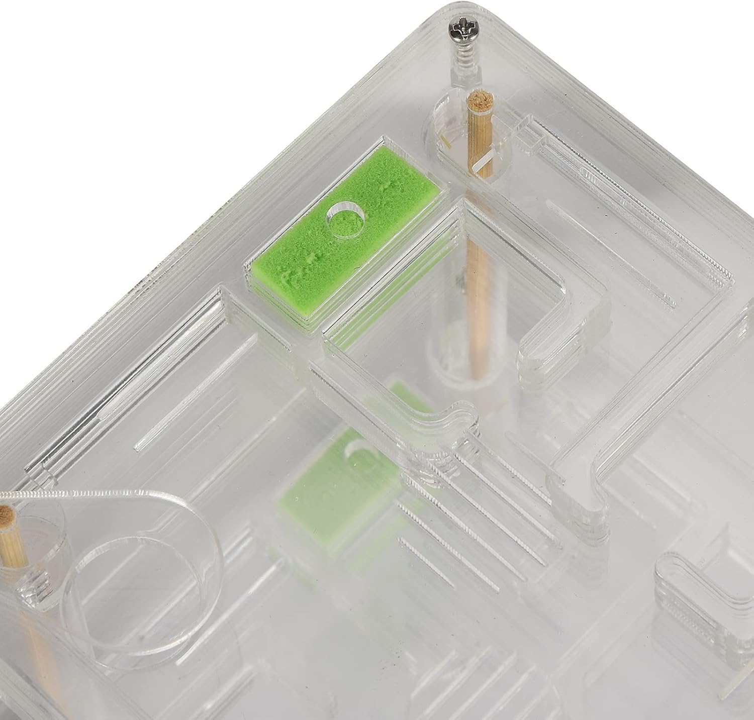 Facile da usare. Nella zona idratante è presente un cotone umidificante per aumentare l'umidità e può essere utilizzato per diversi giorni senza aggiungere acqua. Il design della rete di ventilazione consente alle formiche di respirare e l'ambiente di vita è più confortevole. Realizzato in materiale acrilico di alta qualità, con elevata durezza e alta trasparenza, è comodo da osservare. Ha un buon effetto sigillante per impedire la fuga delle formiche garantendo al tempo stesso la stabilità del formicaio. Il formicaio in acrilico è piccolo e squisito, che può essere utilizzato come giocattolo educativo per coltivare le abilità cognitive e pratiche dei bambini.
